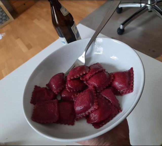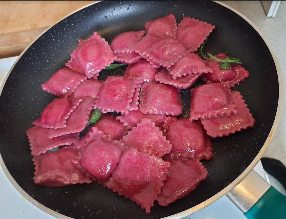 Boil the ravioli for 3-4 minutes then pan fried in vegan butter with a handful of sage leaves until slightly crispy.