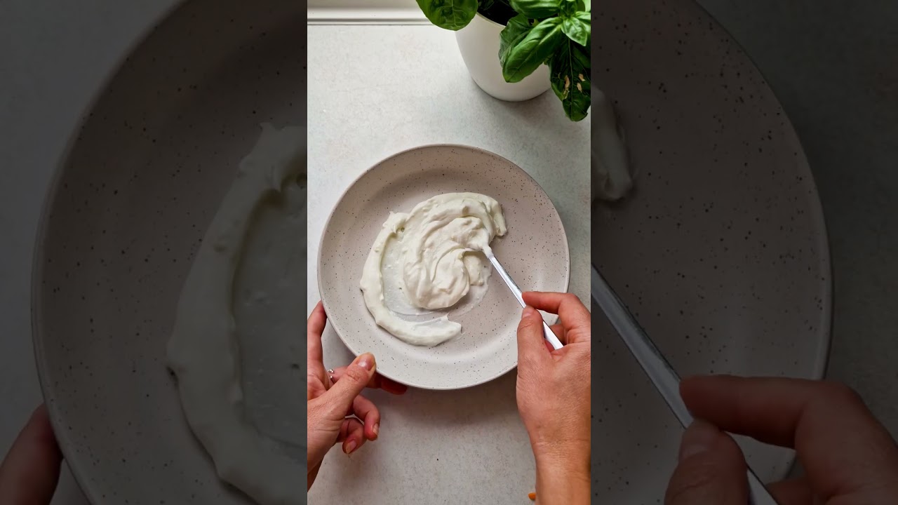In der Zwischenzeit den Jogurt mit zerdrücktem Knoblauch und etwas Salz verrühren und als Basis auf dem Teller verstreichen.