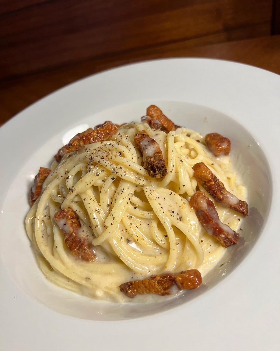 FYI, pasta alla gricia does not have a sauce like in the third picture. The only ‘sauce’ is the fat from the guanciale and a tiny bit of pasta water. The pecorino is added grated.