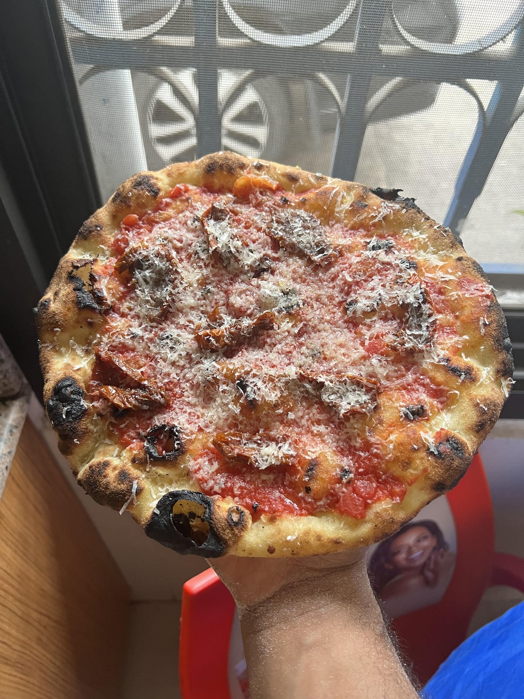 70% hydration. 2.5% salt. 36h ct 2h rt Last one was precooked with olive oil then topped with sun dried tomatoes and tomato sauce and recooked like Roman style.by CaptnCorrupt NapoletanaNeapolitanNeapolitan pizzaOoni Koda 16 🔥pizzaPizza Napoletana 1 Comment aPinchOfThyme 3 years ago Beautiful! The way you placed the zucchini is visually so appealing! 🙂 I should give this a try one day.Write A CommentYou must be logged in to post a comment.