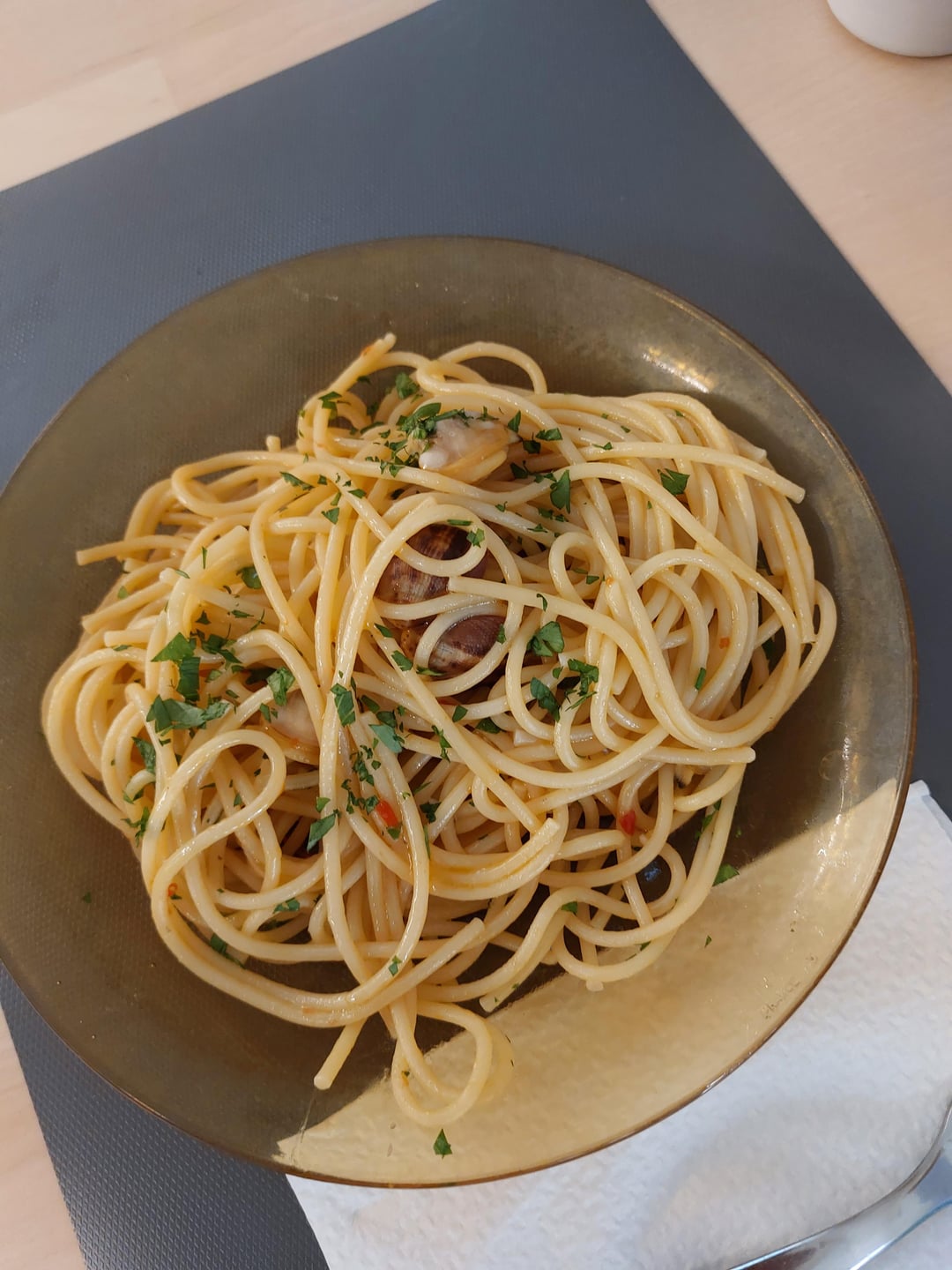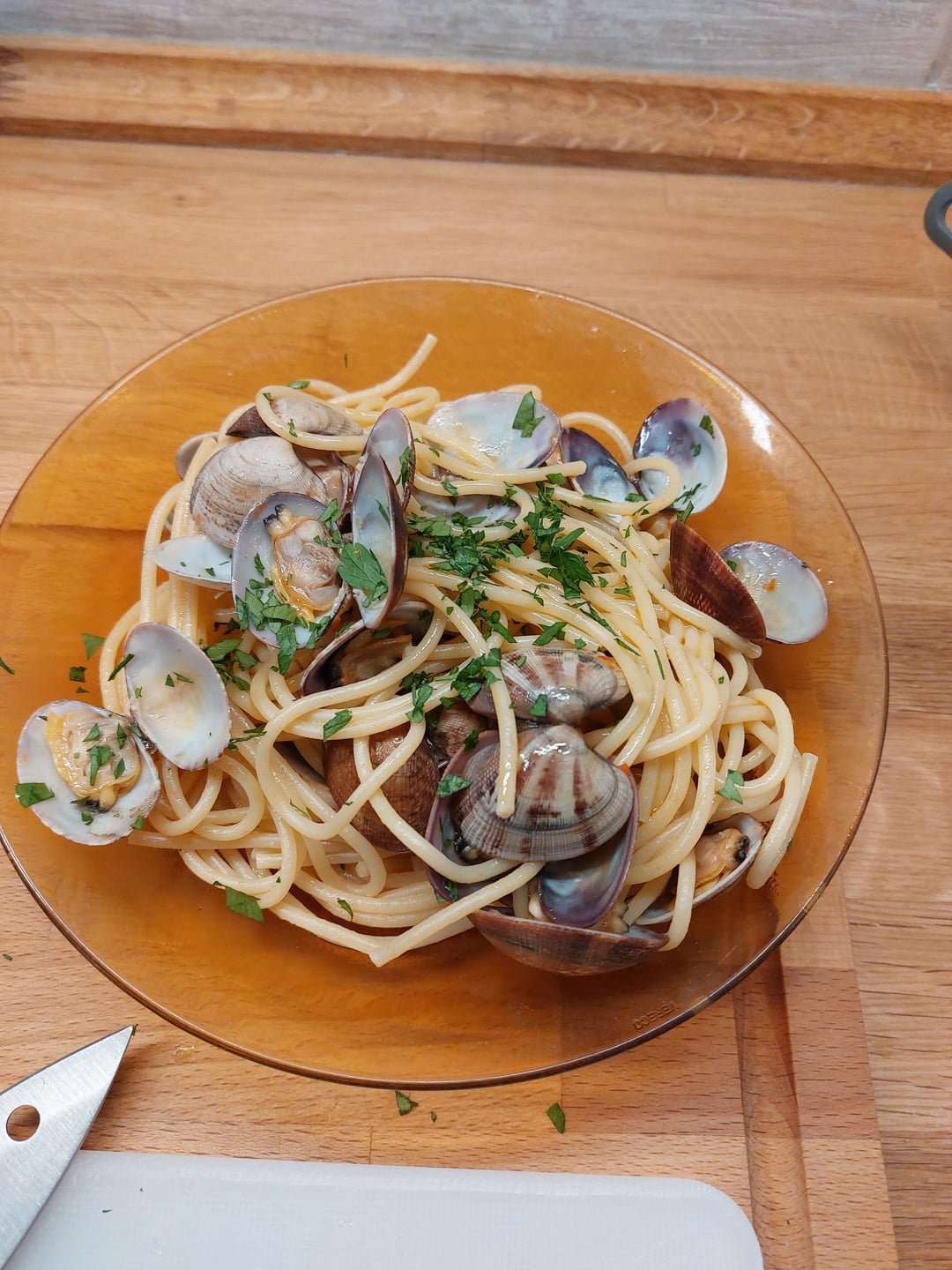 UltimaITA 3 years ago Recipe: 320g Spaghettoni, 700g Vongole Veraci, aglio, olio, peperoncino, prezzemolo q.b.