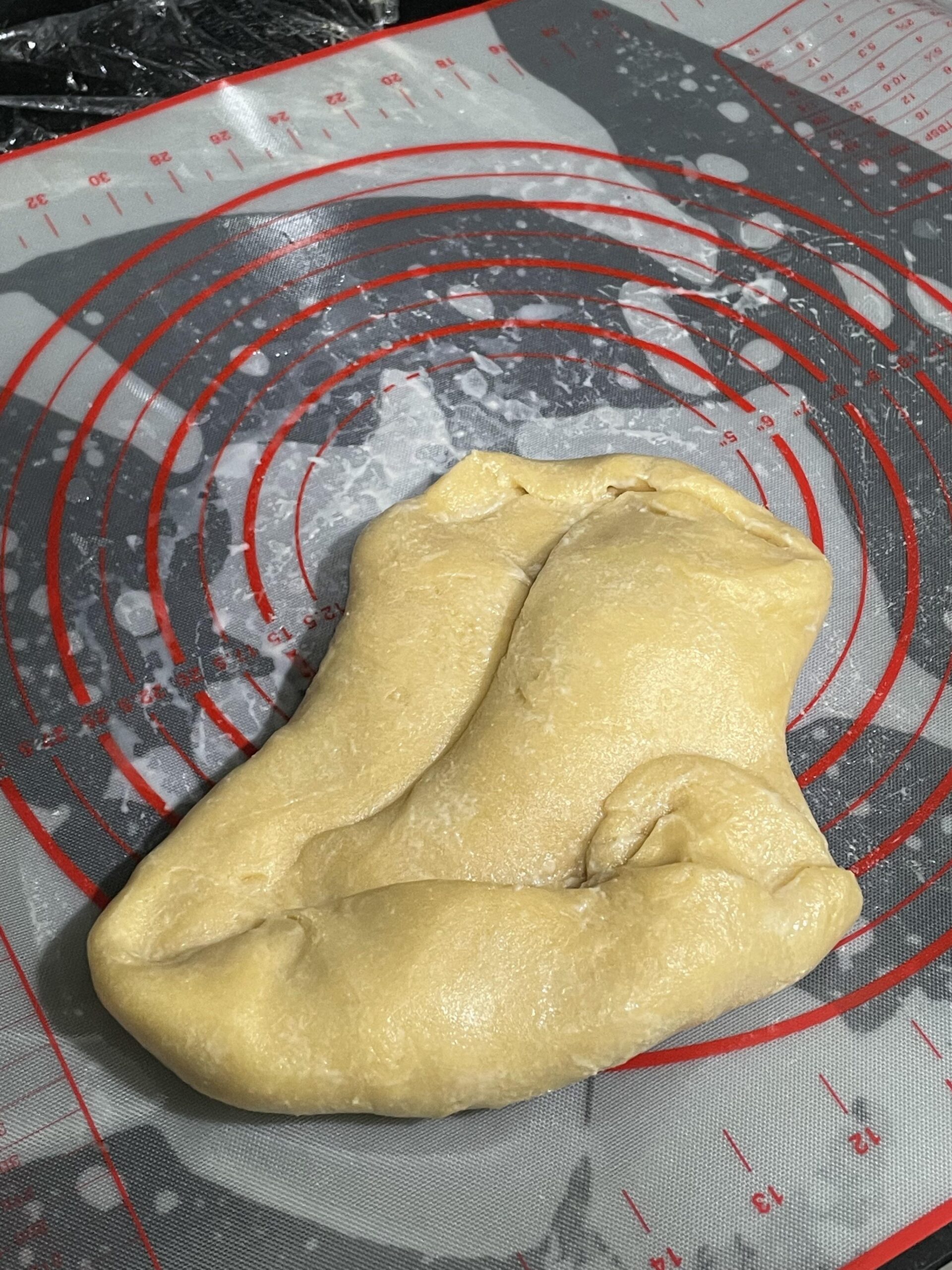 I used 400g of AP flour and 4 eggs and 3 yolks. I kneaded and let it rest for 15mins, and then kneaded again, which is when this started happening. A quick Google Search told me that my dough was too dry, so I wet my hands and kneaded again and let it rest; I think it’s been about 6 hours now. The above is the latest pic of it; still won’t knead!