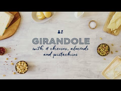 Attention cheese lovers, there’s a new recipe with your name on it: Girandole with luscious layers of Italy’s best cheeses, with a toppine of almonds and pistachios.