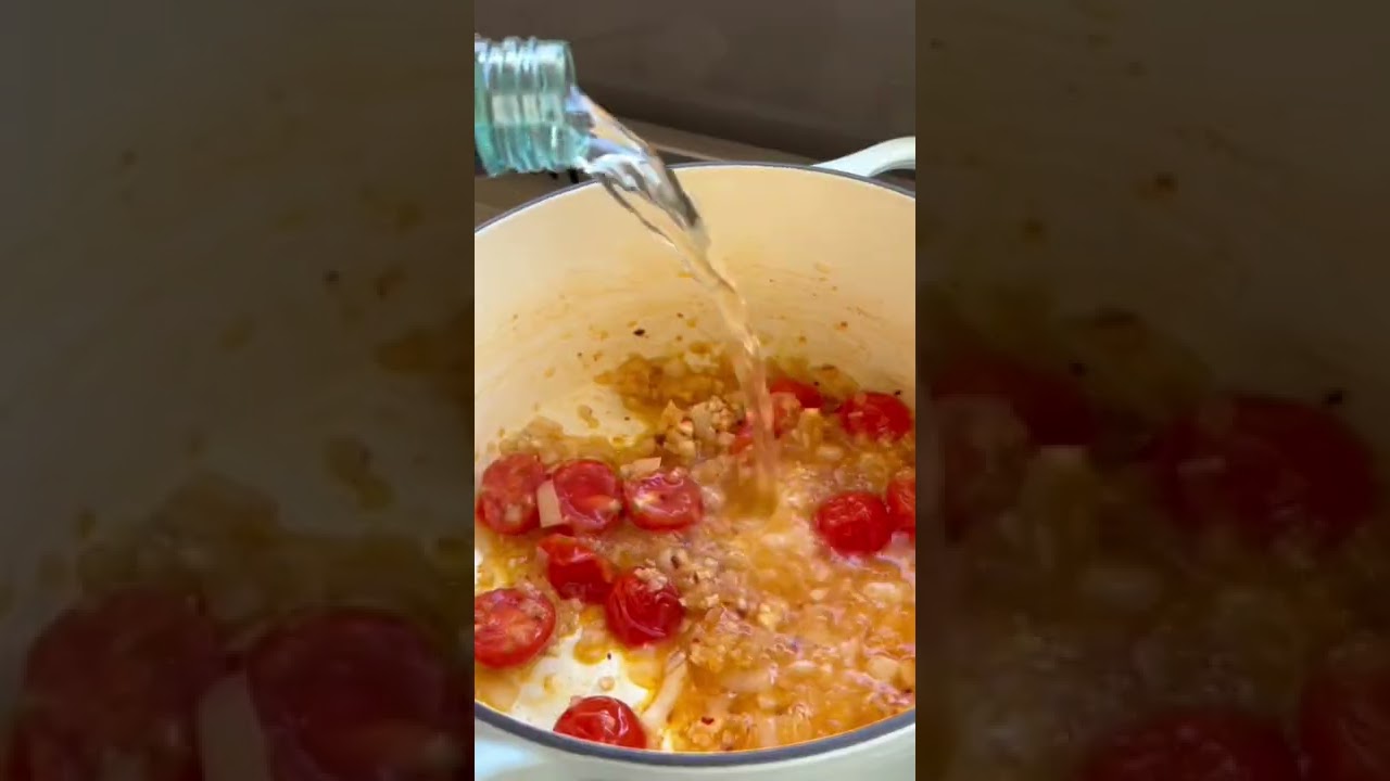 2. In a pot over low-medium heat, drizzle 4-5tbs of olive oil. Add onion, garlic, tomatoes and chilli flakes, sauté until onion is translucent and the tomatoes are soft.