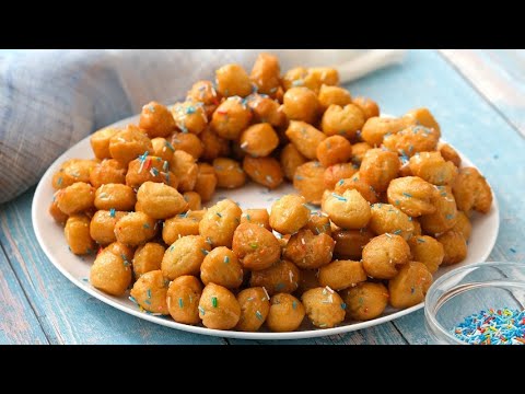 Deep-fry. Heat 200g in a pan. honey and pour fried dumplings there. Add candy.