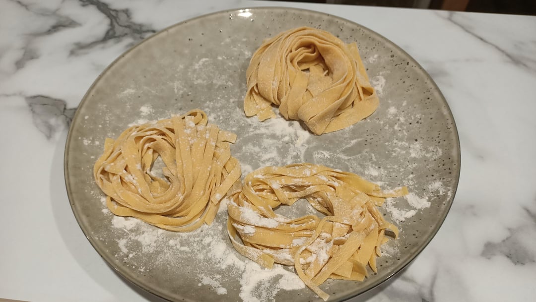 – For my dough I used around 300 grams 00 flour, 3 whole eggs and an extra yolk.