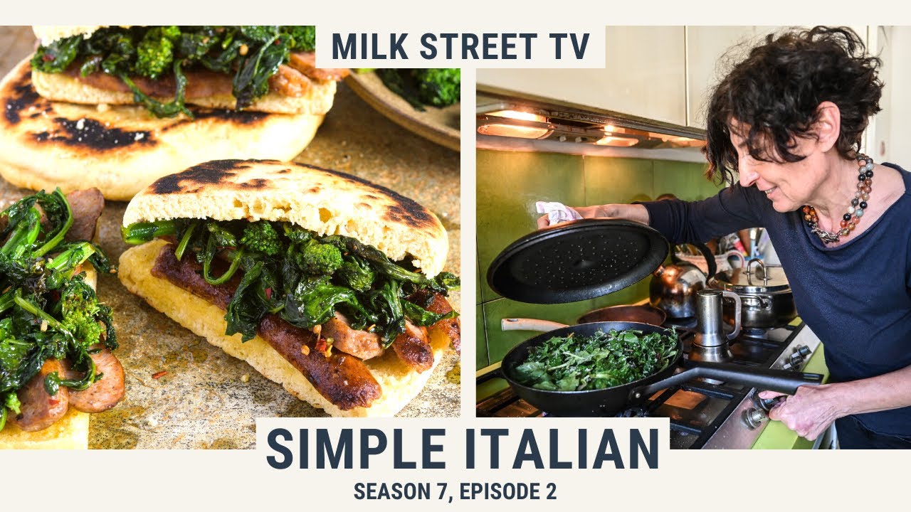 We turn to the rustic side of Italian cuisine as inspiration for this episode. First, Christopher Kimball and Milk Street Cook Erika Bruce assemble Umbrian Flatbreads with Sausage and Broccoli Rabe. Then, Milk Street Cook Rayna Jhaveri makes bright and fresh Pasta with Ricotta, Tomatoes and Herbs, while Milk Street Cook Sam Fore prepares a brothy, hearty Umbrian Lentil Soup.