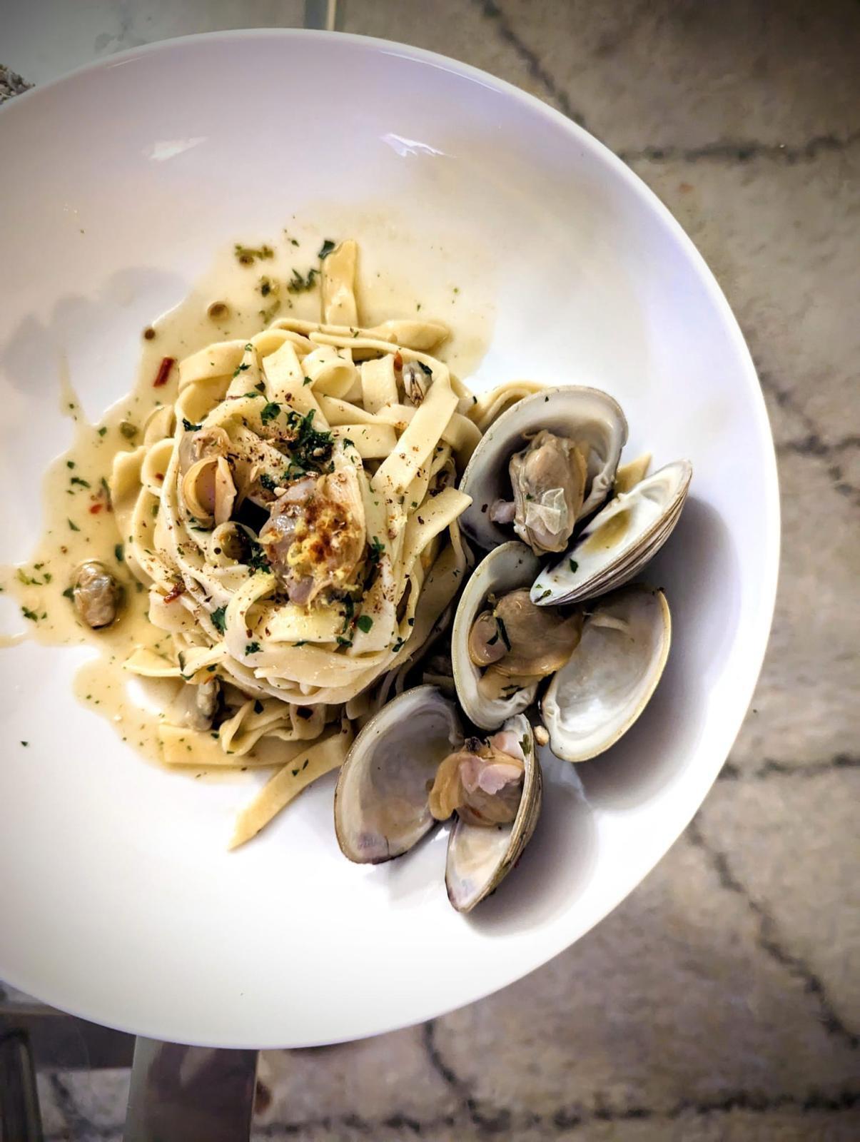 For tagliatelle (which is what you’ve made) with clams I’d expect the clams to be tossed through the pasta, rather than dumped on the side to go cold.