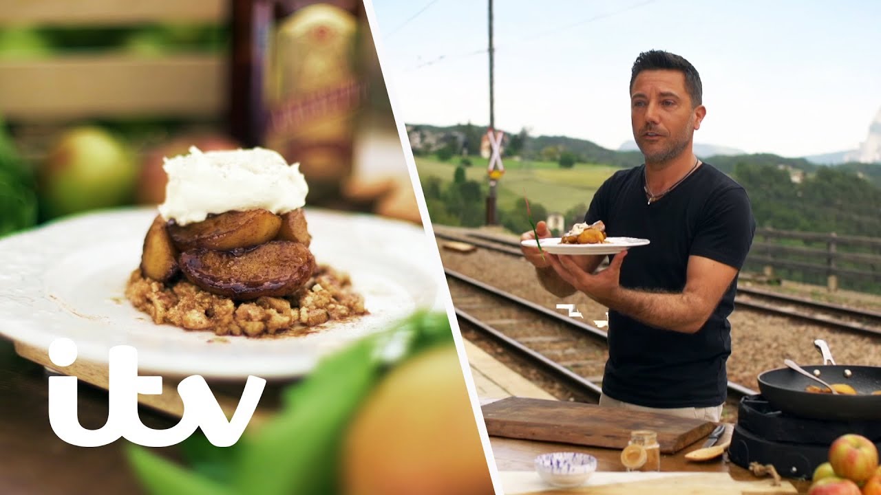 Heading North towards the Dolomites, Gino takes the cable car further into the mountains, it’s like a scene from the Sound of Music. Gino rides a very special train on the Renon line, which is over 100 years old and with spectacular views overlooking Bolzano, and after reaching the end of his journey, cooks a deconstructed apple crumble. Watch now on ITV Hub: