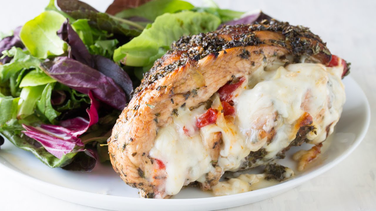 Balsamic and herb glazed chicken, stuffed with artichoke, bell pepper, and fennel. This Italian Stuffed Chicken will tickle your tastebuds!