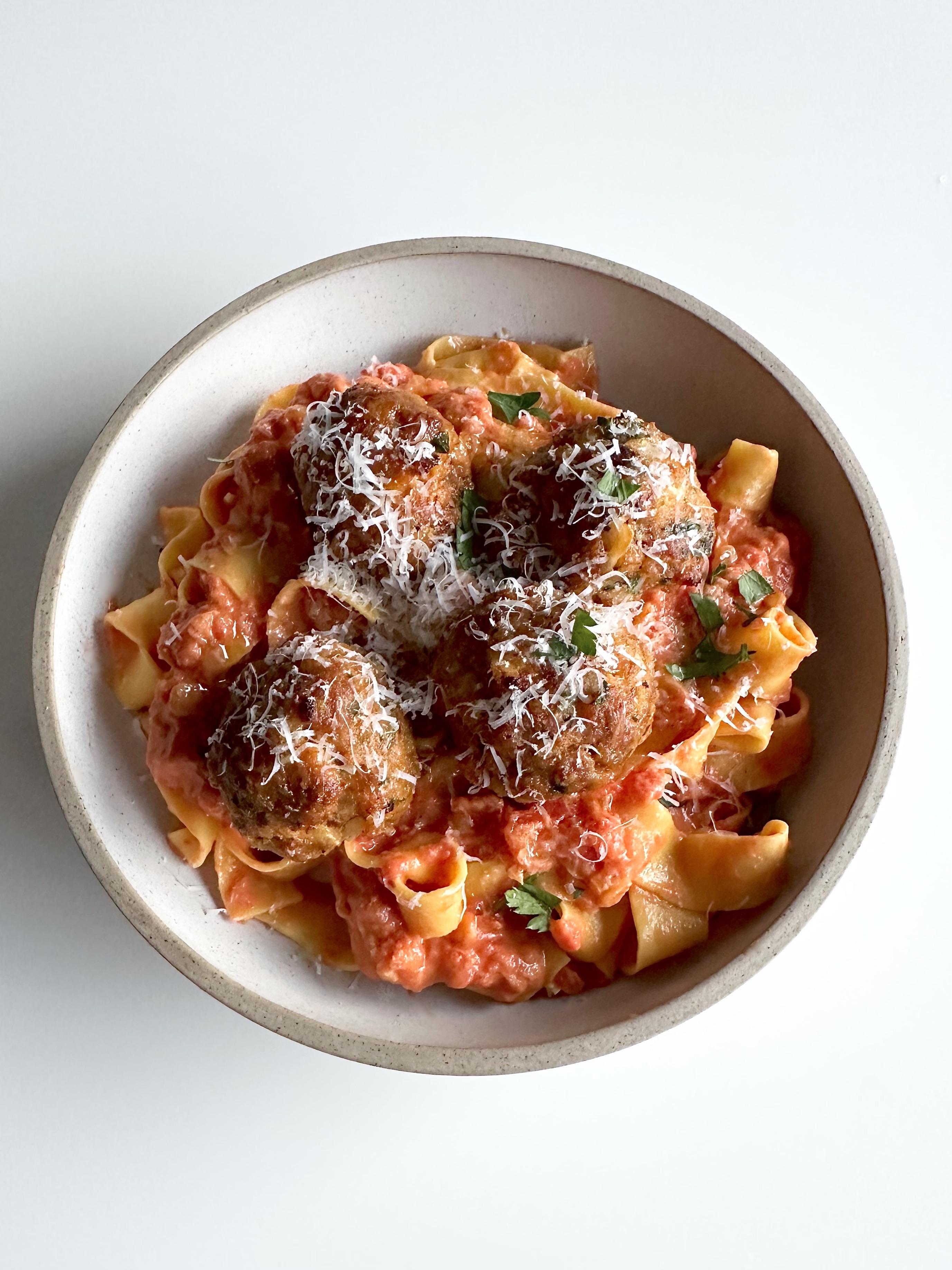 Fresh all yolk tagliatelle with a pomodoro cream sauce and chorizo meatballsby double__negative Homemade Dish - From ScratchPastaWrite A CommentYou must be logged in to post a comment.
