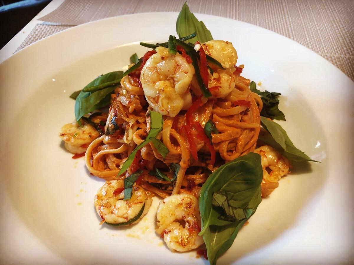 First pic on this account is my king prawn linguine with a homemade tomato, mascarpone and basil sauce with lots of black garlic and served with fresh basil, red and green chilli and garlic oil! A taste of Italy 🇮🇹 in Manchester UK