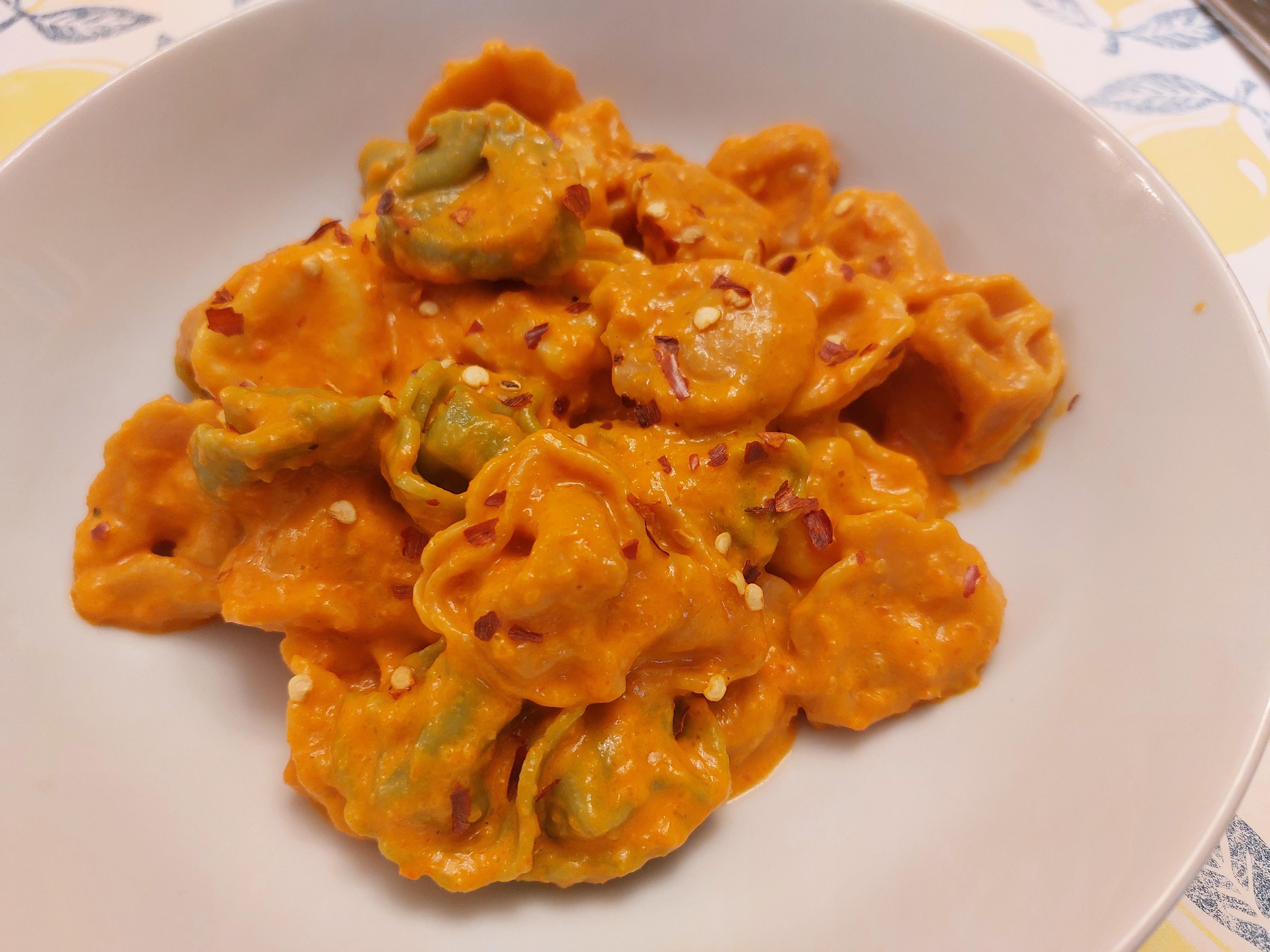 Store bought tortellini with red bell pepper sauceby MayushiiBestGurl Homemade DishPasta 2 Comments MayushiiBestGurl 2 years ago Roasted red bell pepper, stir fried onions, tomato paste, chili flakes, fresh garlic, heavy cream, salt and pepper to taste.​Blend it all together and enjoy! leothefox314 2 years ago This LOOKS spicy.Write A CommentYou must be logged in to post a comment.