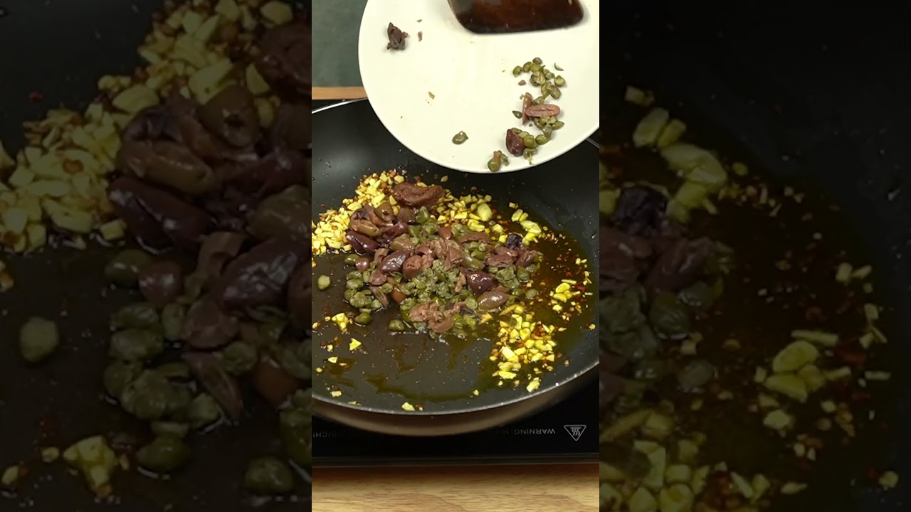 An incredible simple and easy puttanesca pasta recipe that is completely vegan! #shorts