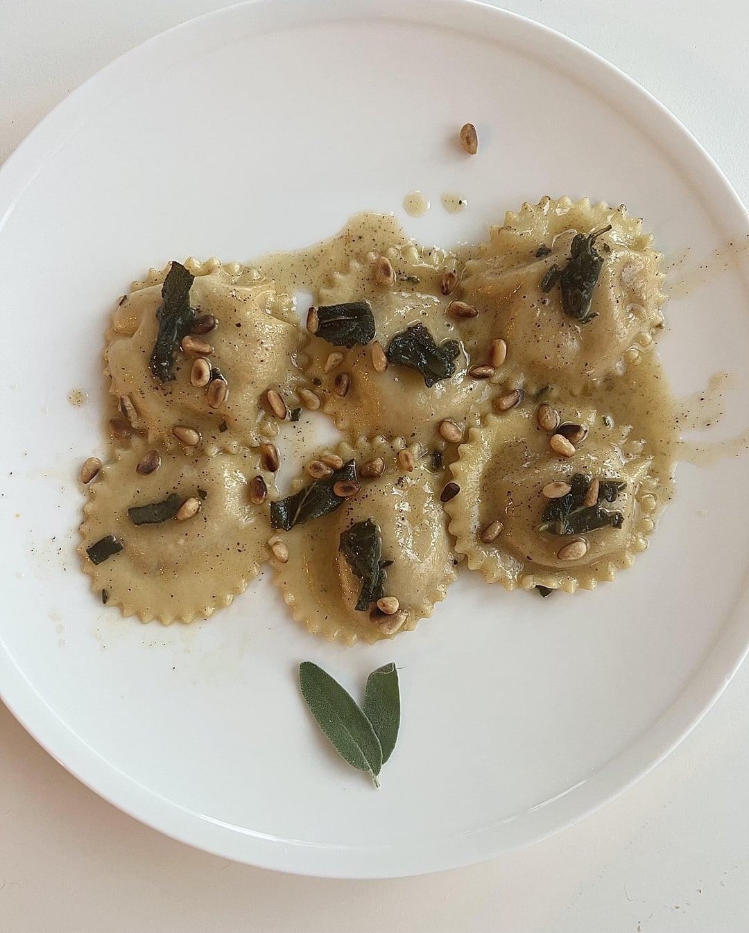 handmade ravioli filled with roasted butternut squash, caramelized garlic, mascarpone, and parmesan; tossed in a brown butter crispy sage sauce and topped with toasted pine nuts. by sleepinginmykitchen Pastapasta from scratch 1 Comment hecooks_co 2 years ago I bet that was delicious.Write A CommentYou must be logged in to post a comment.