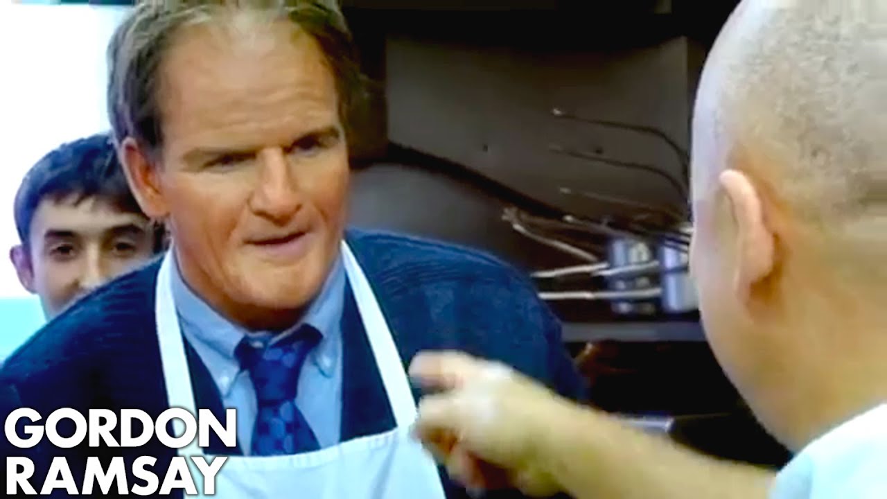 Gordon Ramsay road tests Aldo Zilli’s cookery course under cover and fools him. From the Cookalong Live show.