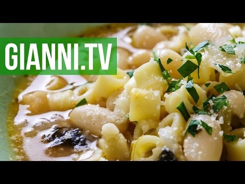 Pasta e fagioli is made all over Italy and varies from region to region. One big difference is that mine has no meat. Up north they usually add pancetta to the aromatics as the base of the soup. Some people like to add tomato puree. Some people don’t add tomato, they like a white pasta fazool.