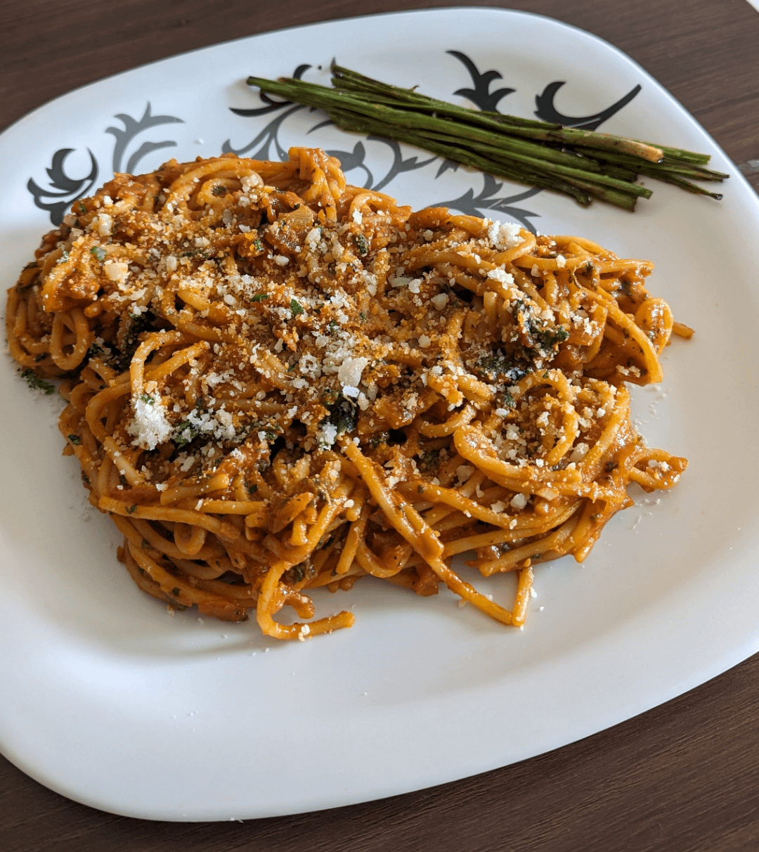 What’s the reason for having an asparagus side? A decent plate of pasta doesn’t need an accompaniment and not something you can twirl onto your fork.
