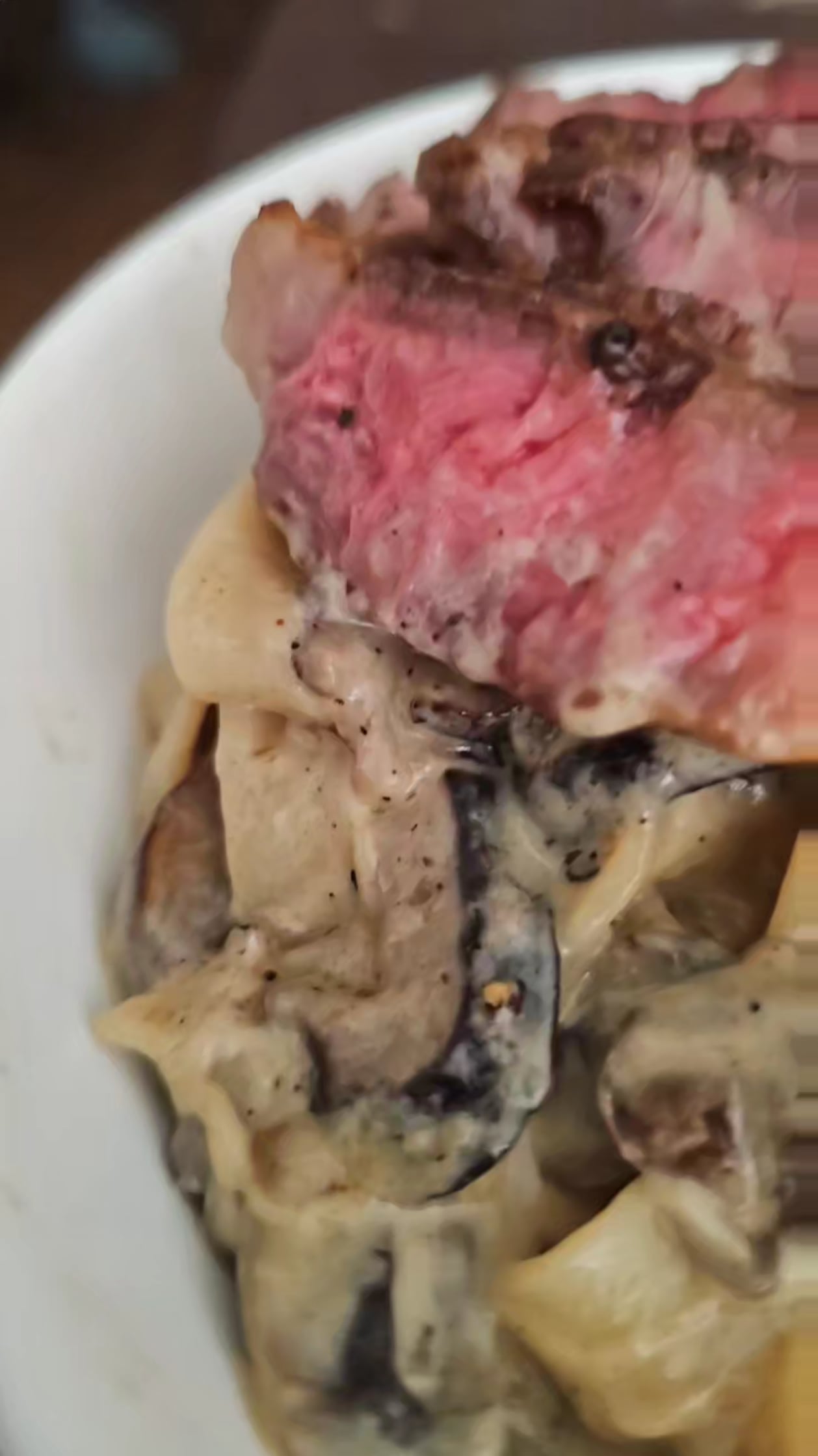 Prime Ribeye and a White Wine Mushroom Miso Cream Pasta I made to pair it.
