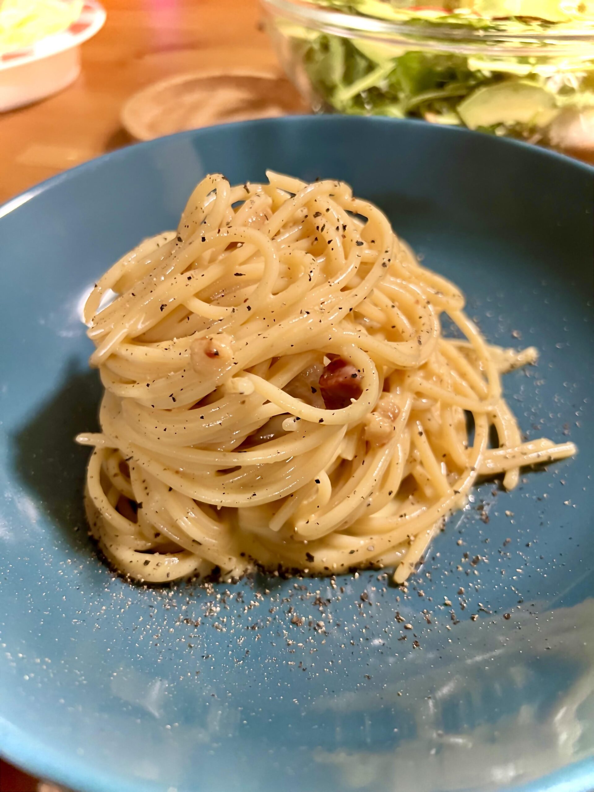 – IMPORTANT: Turn off pan, add Al-dente pasta to pan, wait until it cools a bit (~2-3 mins).