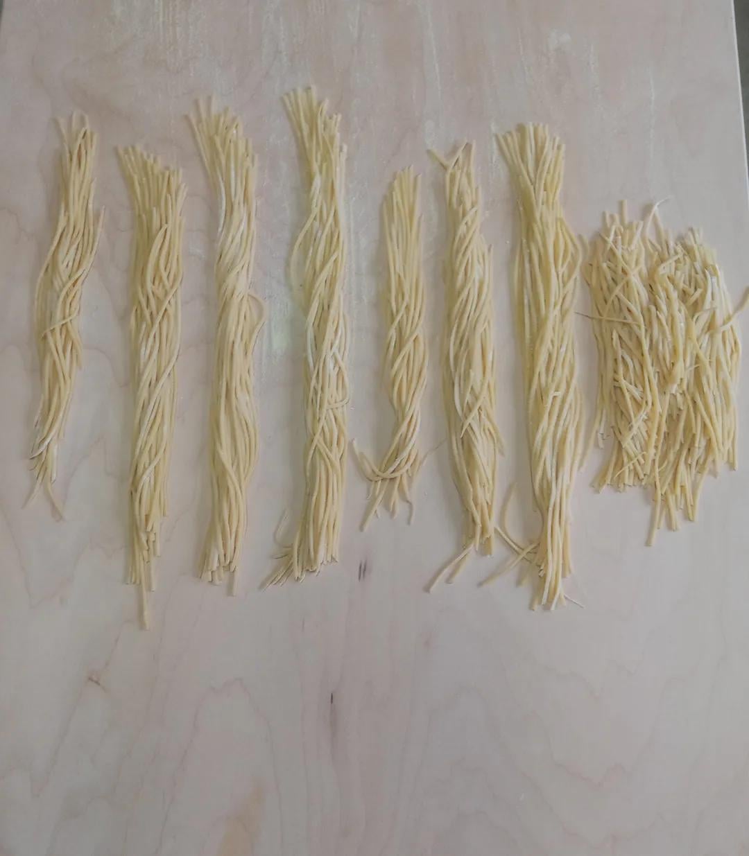 Spaghetti alla chitarra, tomato sauce, mozzarella, and pepperoni.