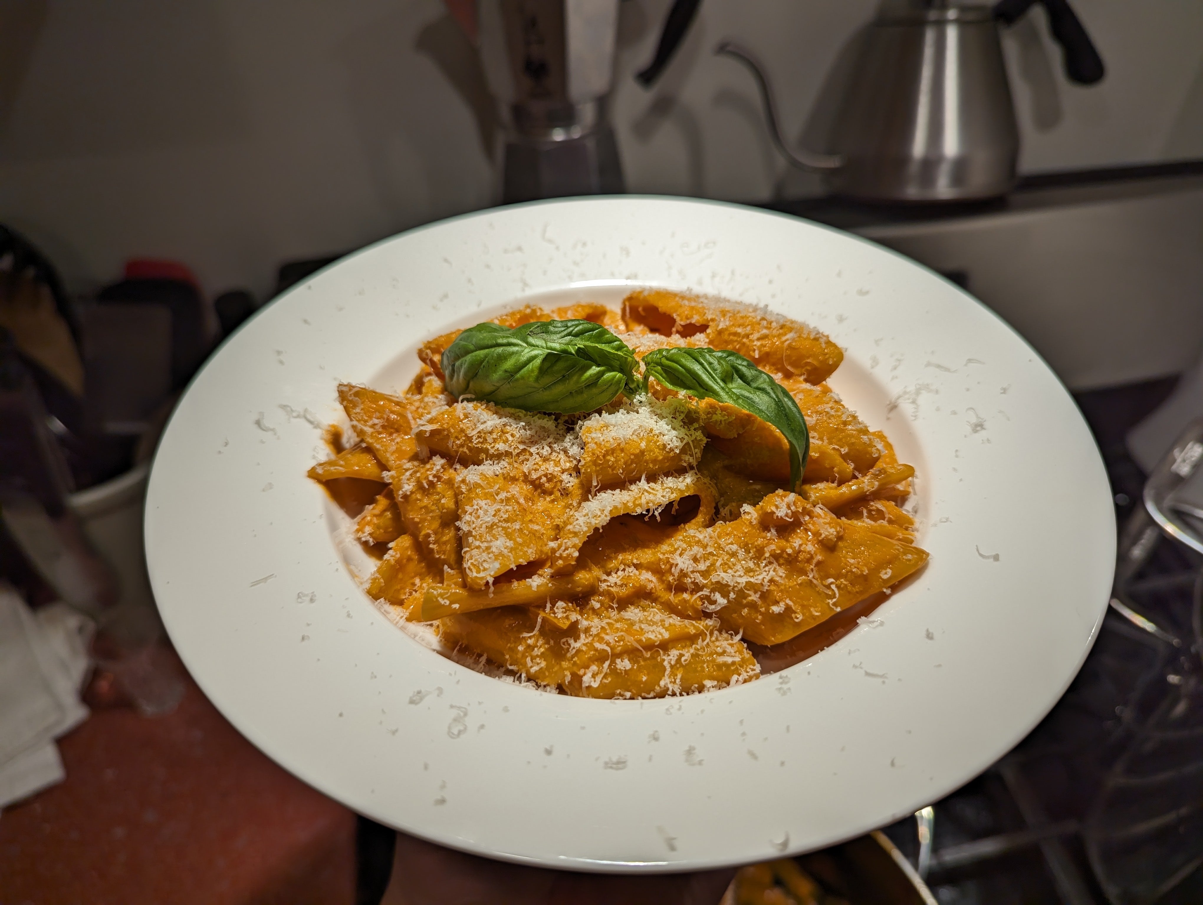 I used [Molly Baz’s Bon Appetit](https://www.bonappetit.com/recipe/rigatoni-with-easy-vodka-sauce) recipe [(YouTube video)](https://www.youtube.com/watch?v=DrzWGUGN6vY):