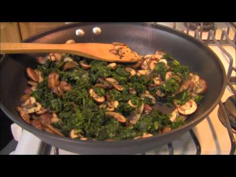 Now add spinach and crimini mushrooms.