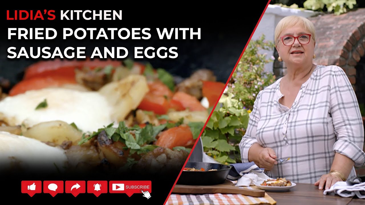 Breakfast at Lidia’s! Join me in my garden as I show you the Lidia way to prepare this simple, delicious dish – all in one pan. It’s perfect for a weekend brunch or family get together. If you’d like to make this dish vegetarian, omit the sausage and up the vegetables. You could also add diced zucchini or eggplant along with the peppers. #LidiasRecipes #LidiasItaly #LidiasKitchen #LidiaBastianich #ItalianFood #25YearsofLidia #FromLidiasTableToYours