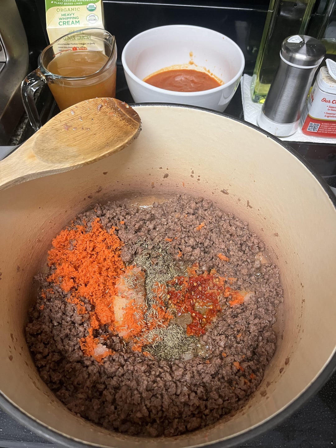 Hey just a suggestion here. There is a product called vegetable protein it’s sold dry then hydrates and looks and acts and feels just like ground meats