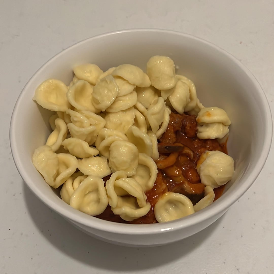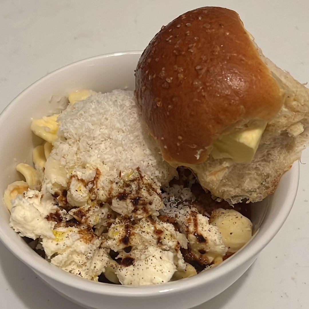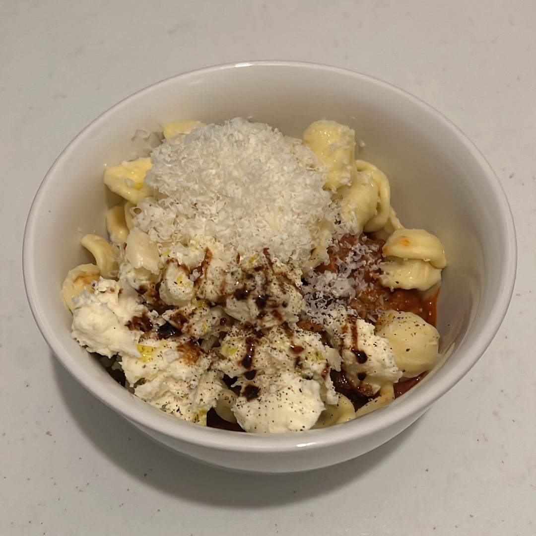 Hot tip – mix a bit of your base sauce with your noodles, just enough to coat. Then plate as usual. It will really enhance flavor and keep from sticky / gummy noodles but allow for your sauce to really stick to your pasta. When you do EVOO or OO it actually acts as a barrier between your noodles and sauce and prevents the pasta from absorbing what looks like incredible flavor.