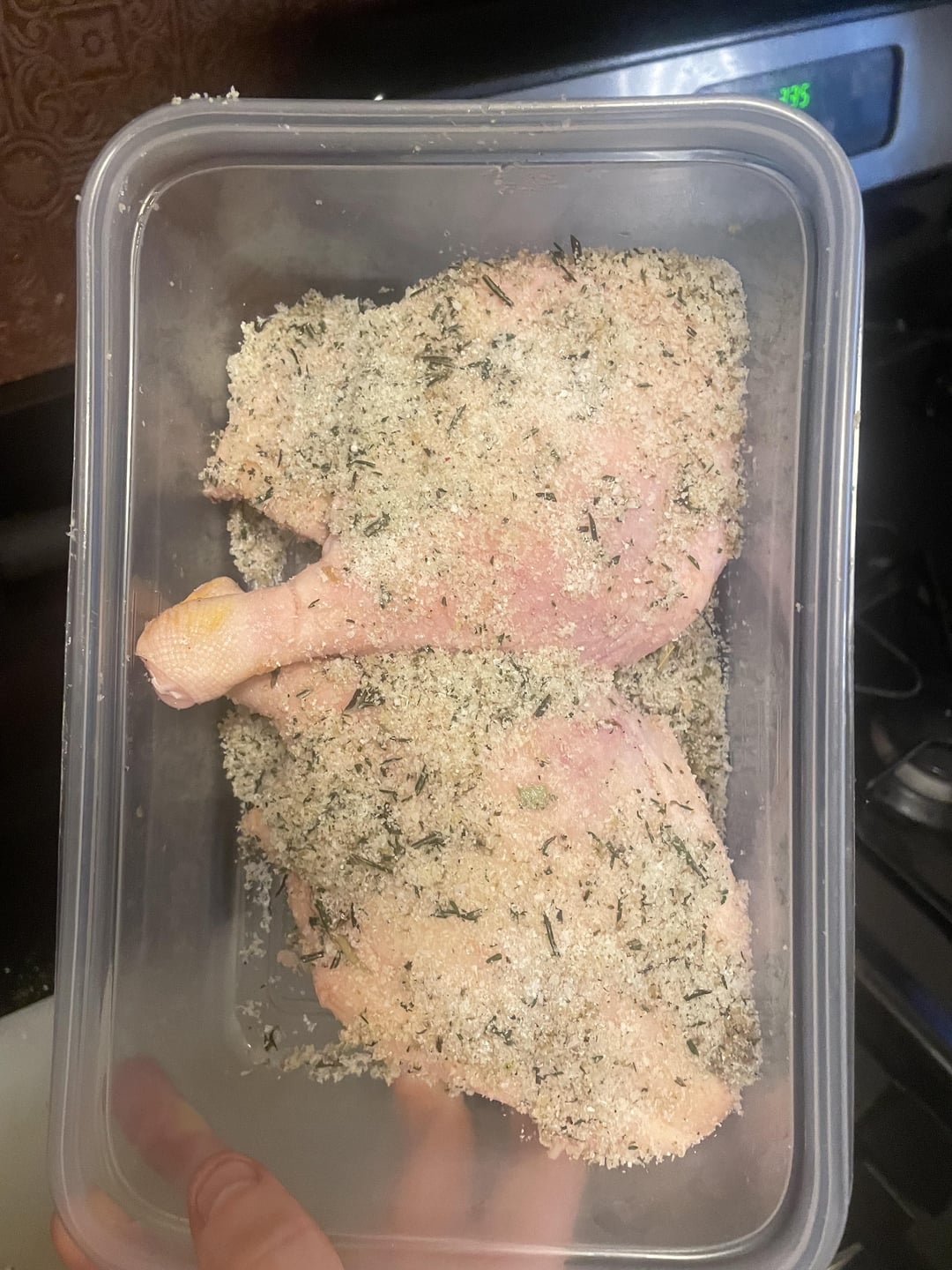 – create salt bath for duck to rest for 24 hours. Salt bath included – garlic, rosemary, thyme, msg, sugar