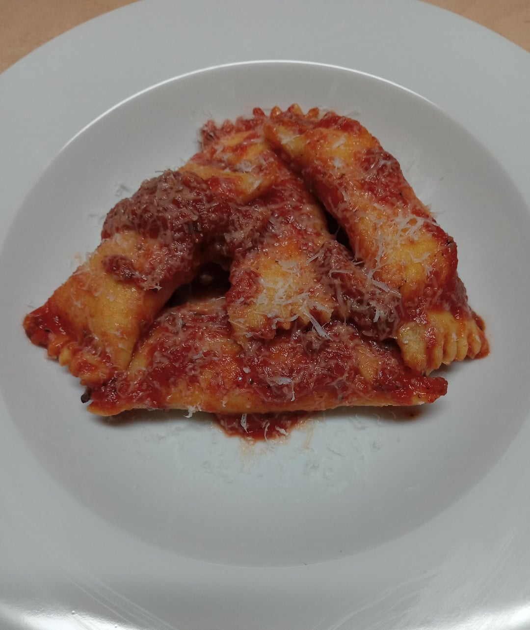 Ricotta and turkey Agnolotti with a tomato and garlic sauce