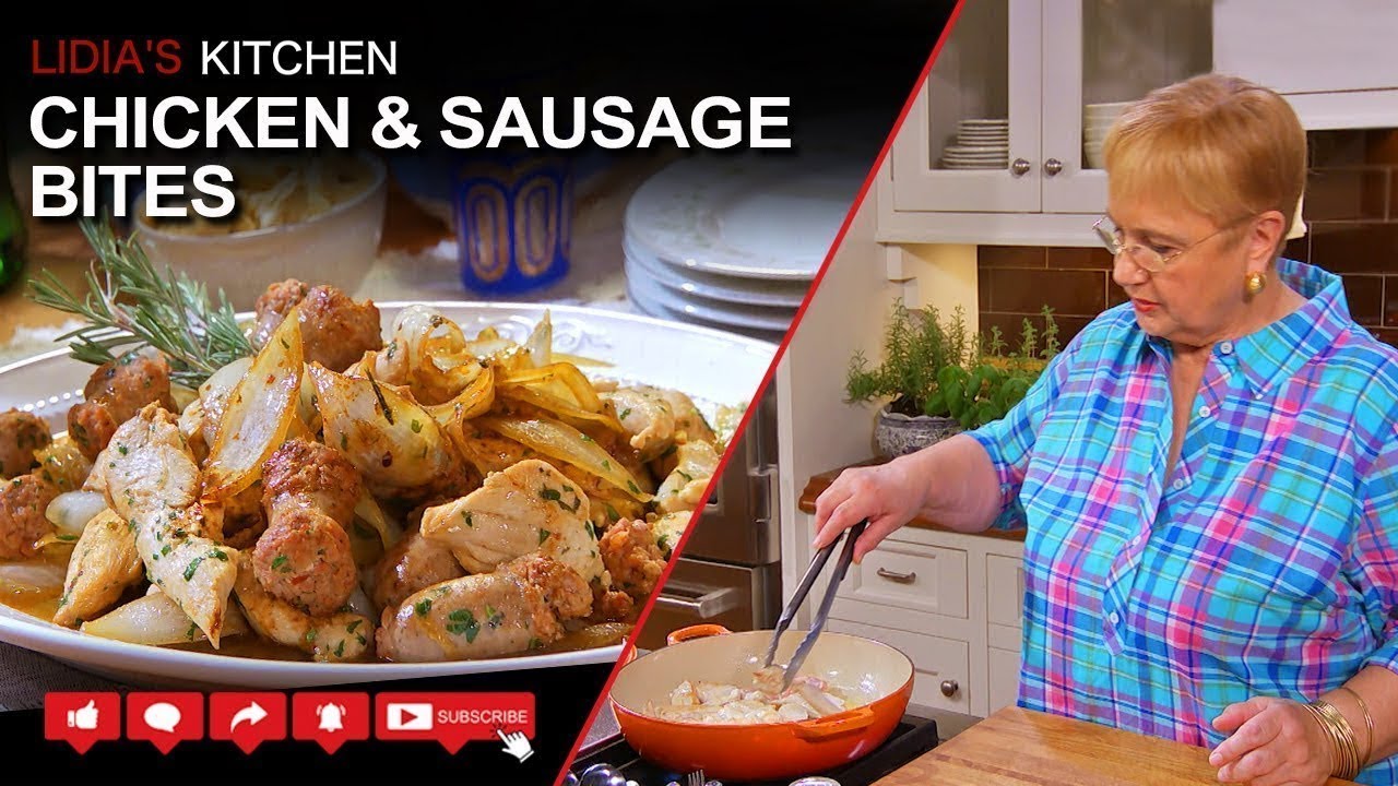 Full Recipe – https://lidiasitaly.com/recipes/chicken-sausage-bites-apple-cider-vinegar-sauce/