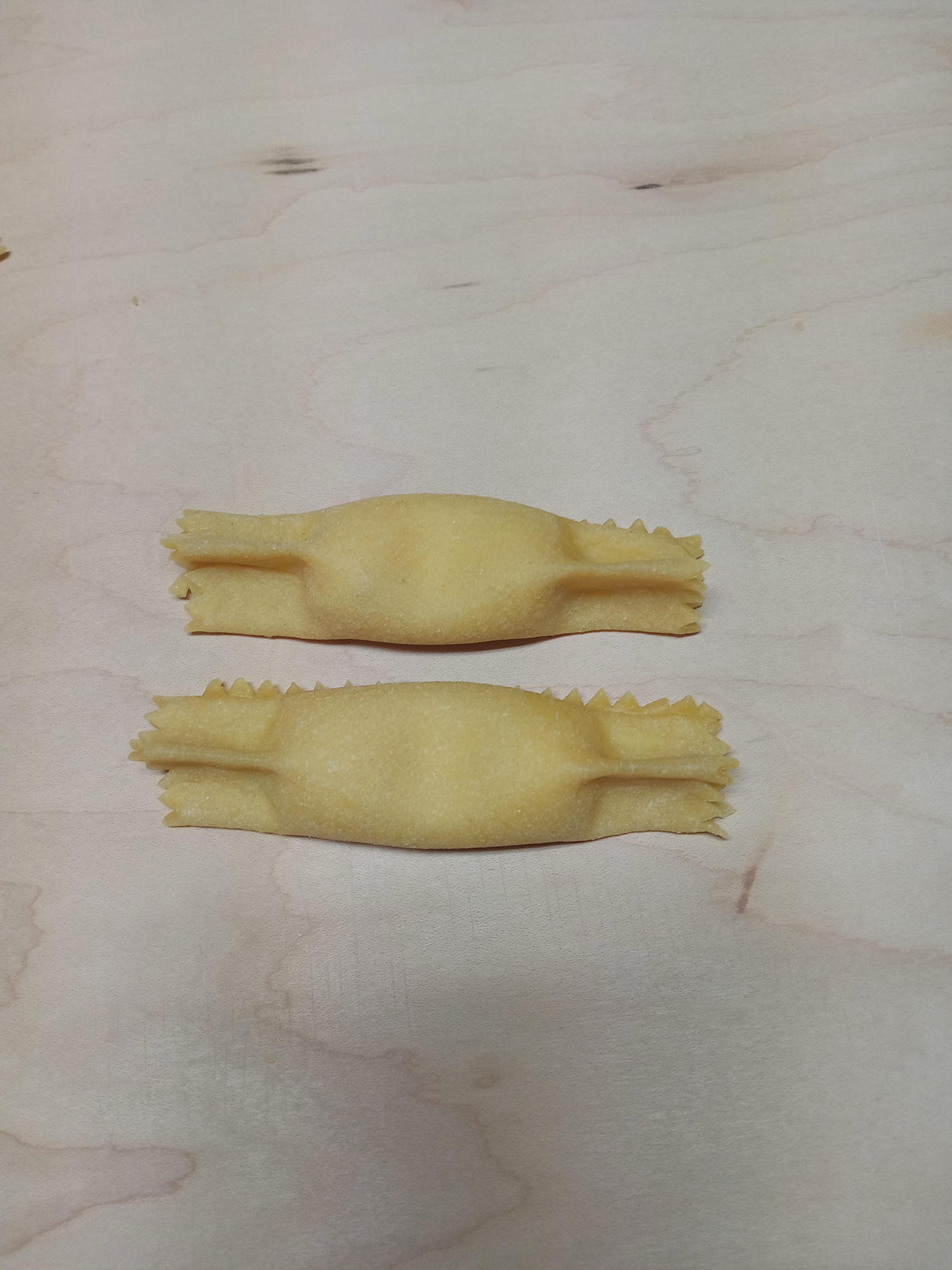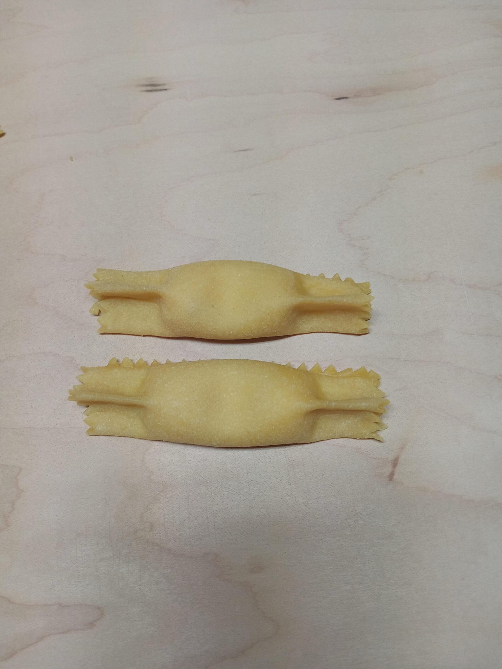 Rampasta 2 years ago Looking good! We make this shape and called it Scarpinocc (which means Shoe in Lombardy) and fill it with fish and Mascarpone.