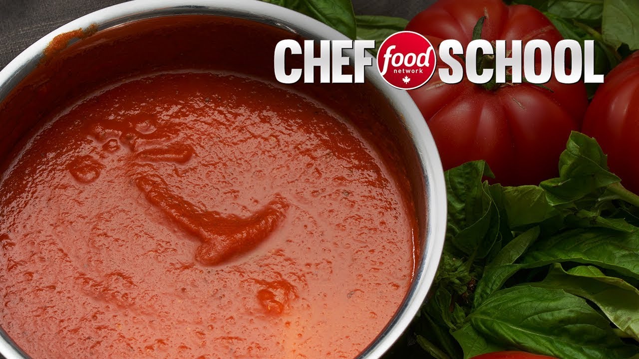 Find the full recipe at http://www.foodnetwork.ca/shows/food-network-canada-chef-school/recipe/classic-marinara-with-san-marzano-tomatoes/21294/