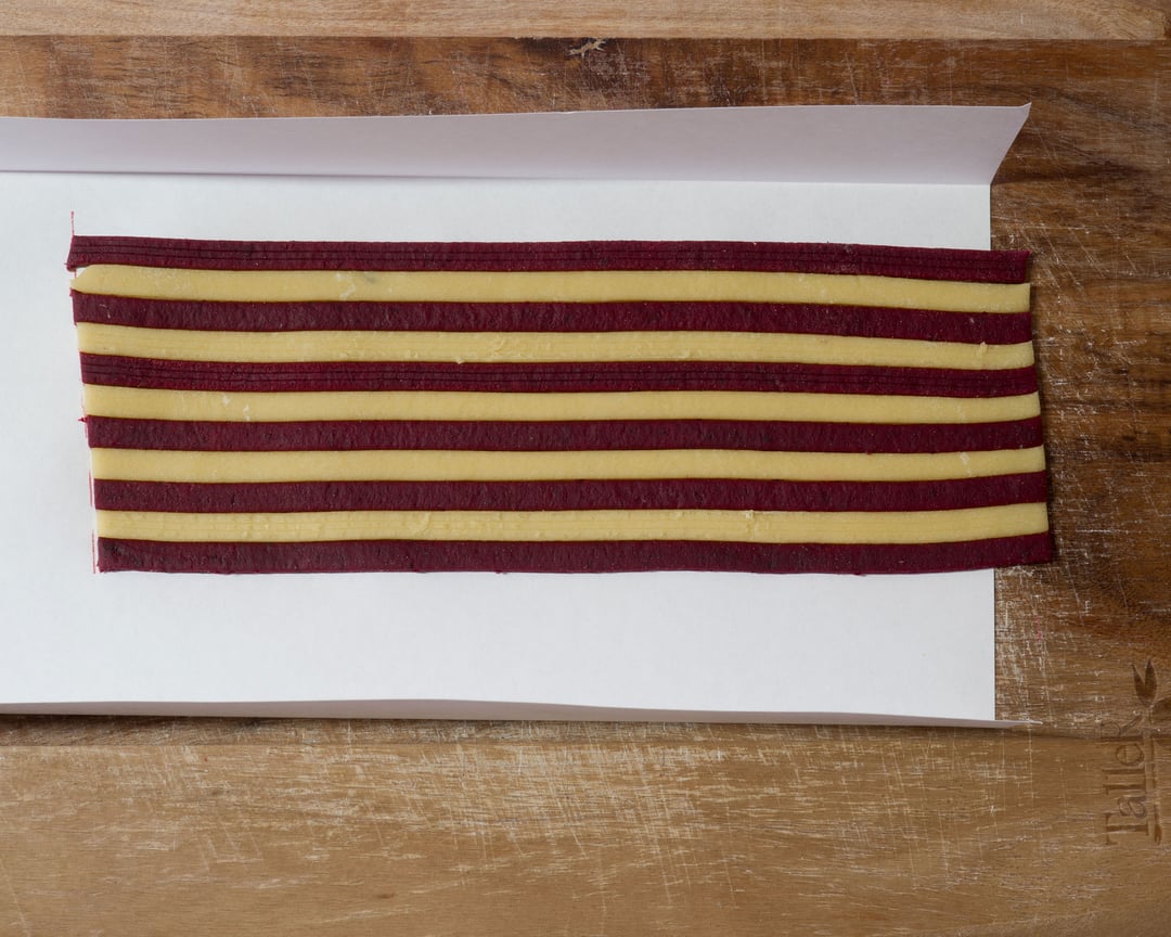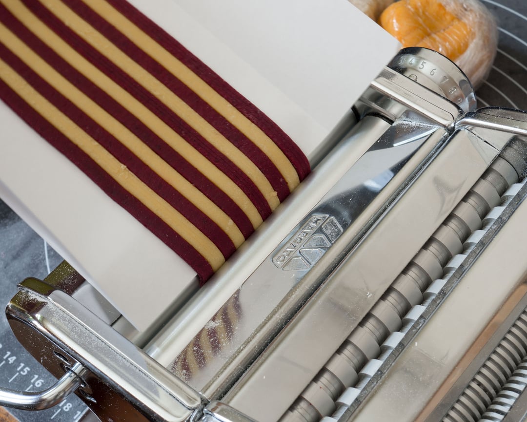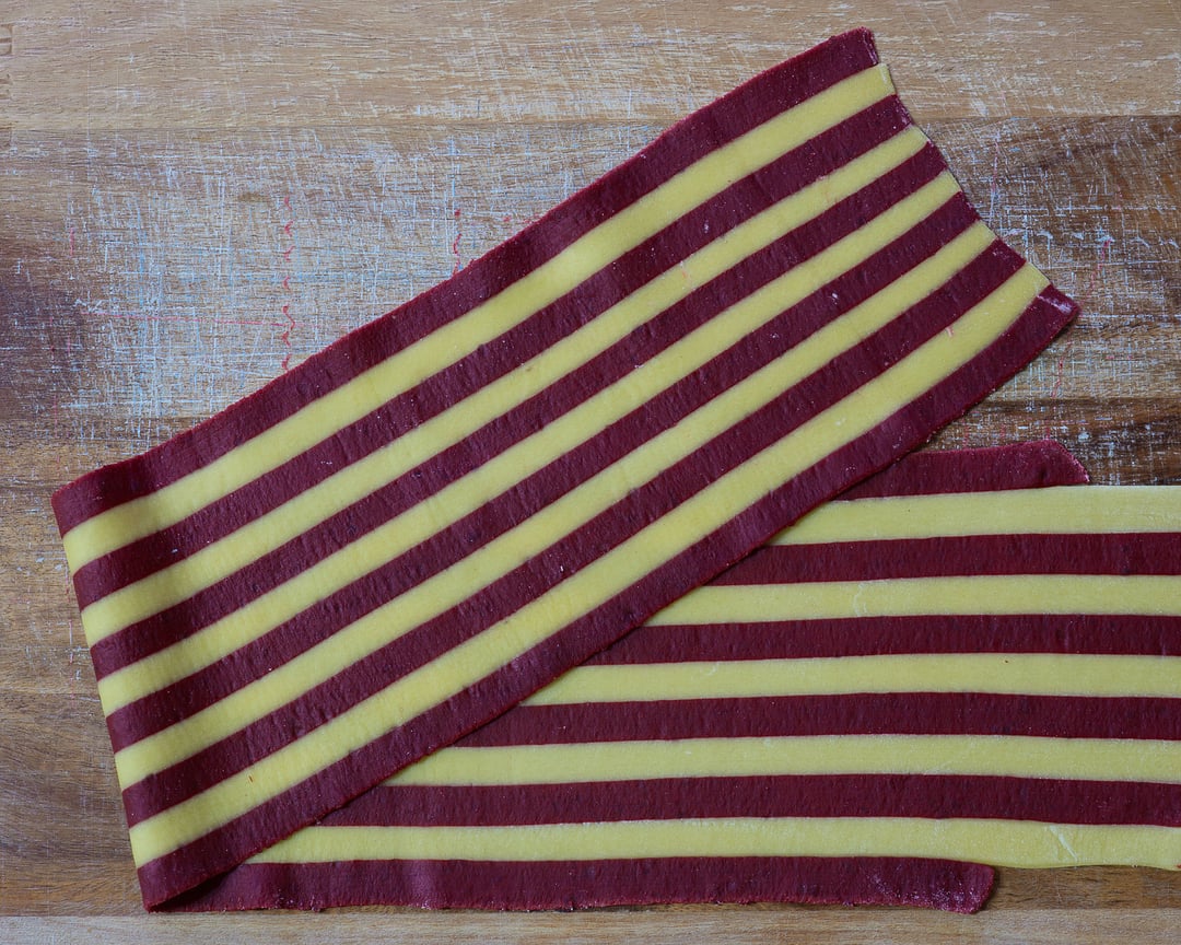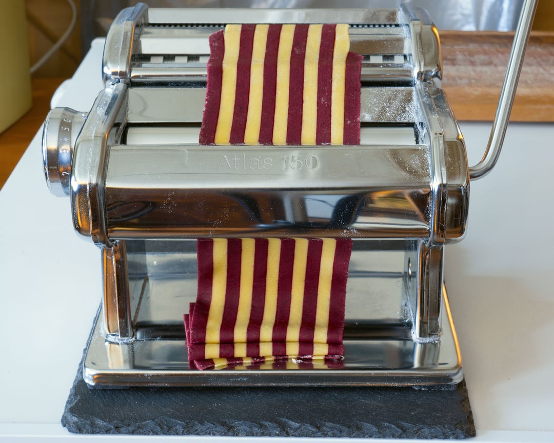 Put separate stripes (thickness 4) on sheet of paper or other flat surface. After that gradually roll stripes from thickness 5 to 7 (or thinner if you want). Keep stripes together with fingers while rolling. That’s all 🙃 by Mysterious-Rest420 Pastapasta from scratch 2 Comments BehemothManiac 2 years ago So basically make fettuccine and stick them back together. Gotcha! aeroartist 2 years ago how did you dye the red? powdered beet?Write A CommentYou must be logged in to post a comment.