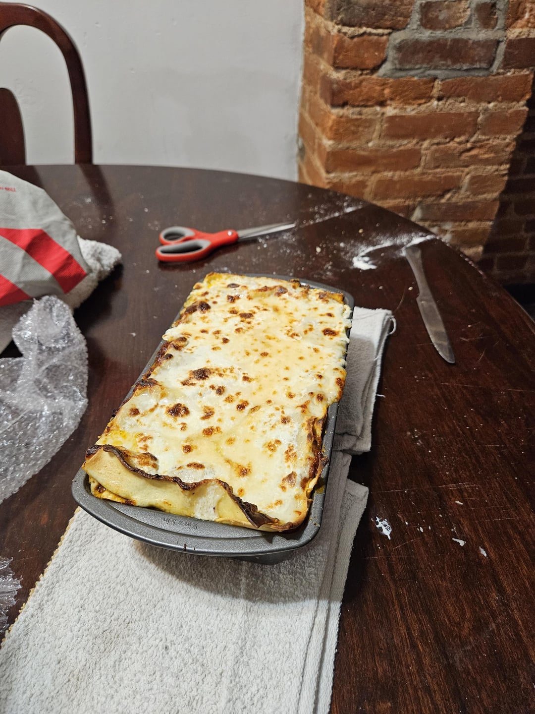 Made lasagna from scratch, even the pasta was fresh made by me. Bolognese needs work, first time making it and I don’t cook with alcohol so my choice of substitute made it a little too sweet. Over all still a solid 7/10. Maybe even an 8. Used a mozz bechamel and ricotta too. Normally I would make the cheeses myself too but we’re in a new house and I was feeling lazy. Planning to chill it and then cut it into nice rectangle pieces, sear them in a pan, and serve on a “bed” of classic red sauce (were dorky red sauce enthusiasts in my home).