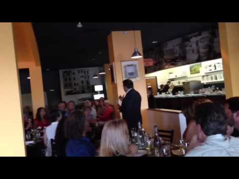 Mario Scano of Winebow Imports introduces a delightful five-course wine dinner at Parma Trattoria in Louisville, CO on Wednesday, May 22, 2013. The dinner menu paired incredible Parma food courses with the wines of Winebow Imports which included 2011 Mastroberardino Falanghina del Sannio, 2011 Argiolas Costamolino Vermentino di Sardegna, 2010 Bisceglia Aglianico del Vulture, and 2010 Tasca d’Almerita Lumuri Nero d’Avola.