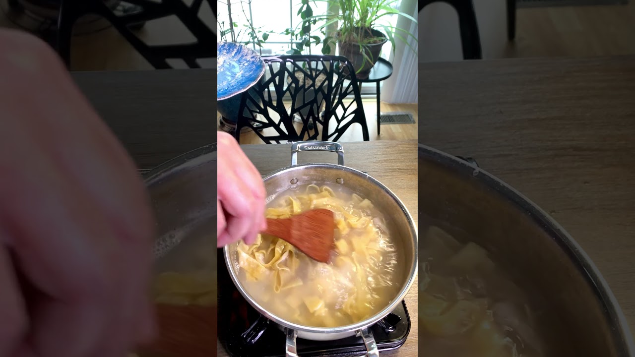 7. Cook the pasta in the boiling water. Fresh pasta should take 1-2 minutes, depending on final thickness. If dry and / or store-bought, cook according to the package instructions.
