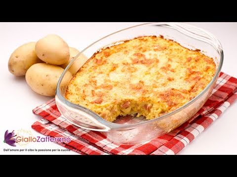 The potato cheese casserole, known in Italy as potato gateau, is a rustic and tasty main course made with potatoes, enriched by eggs, spices, ham and cheese.