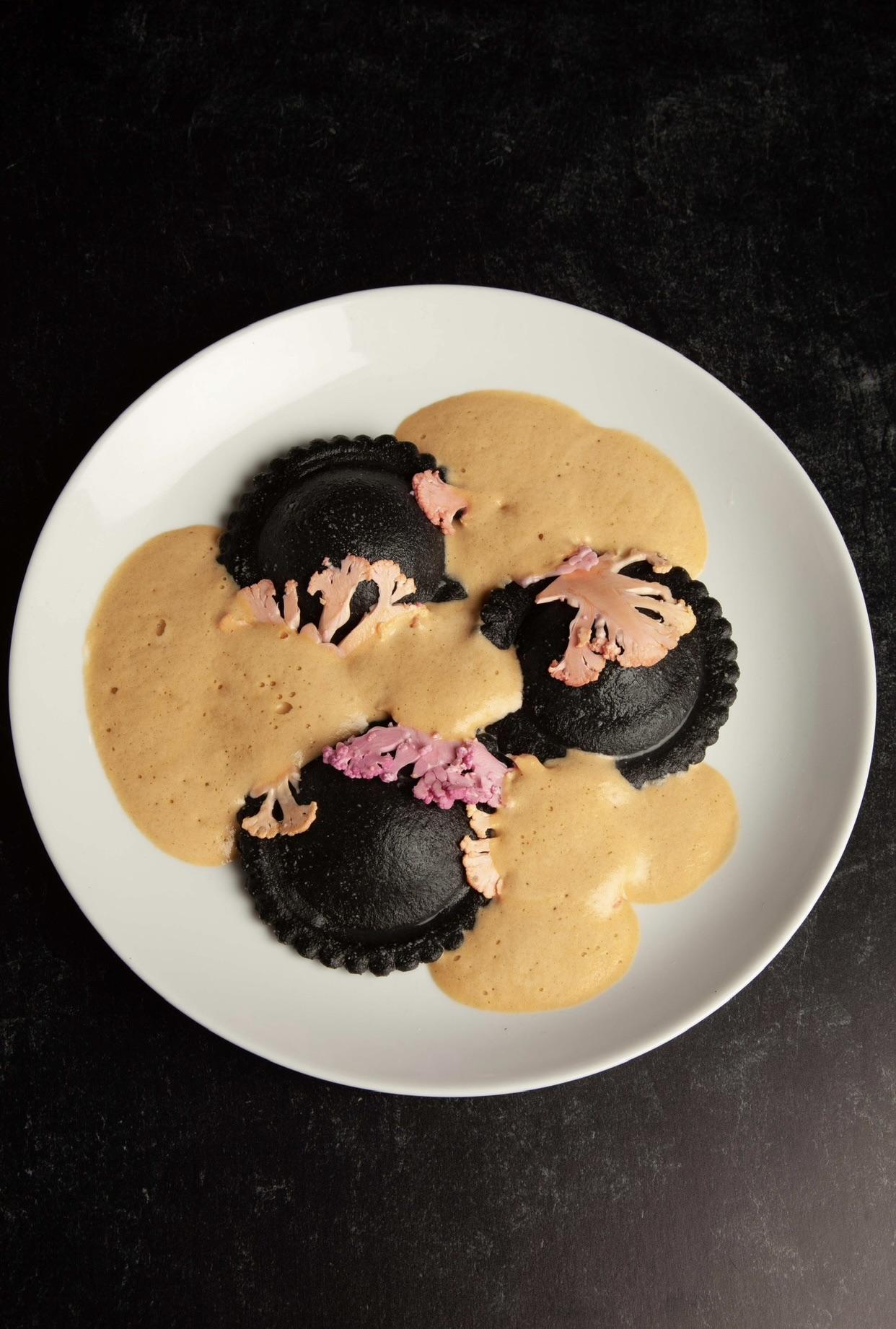 Squid ink ravioli stuffed with shrimp and scalop mousse. Served with a shrimp head bisque foam, cauliflower purée and pickled tri color cauliflower.by Chefrigatony Homemade DishPastaWrite A CommentYou must be logged in to post a comment.