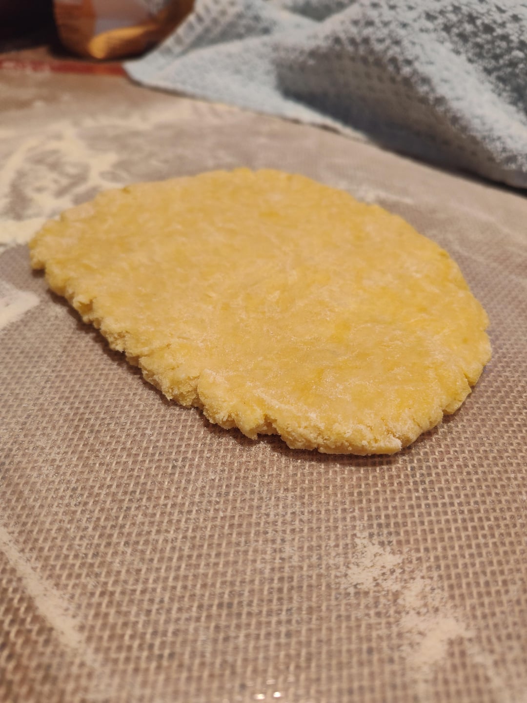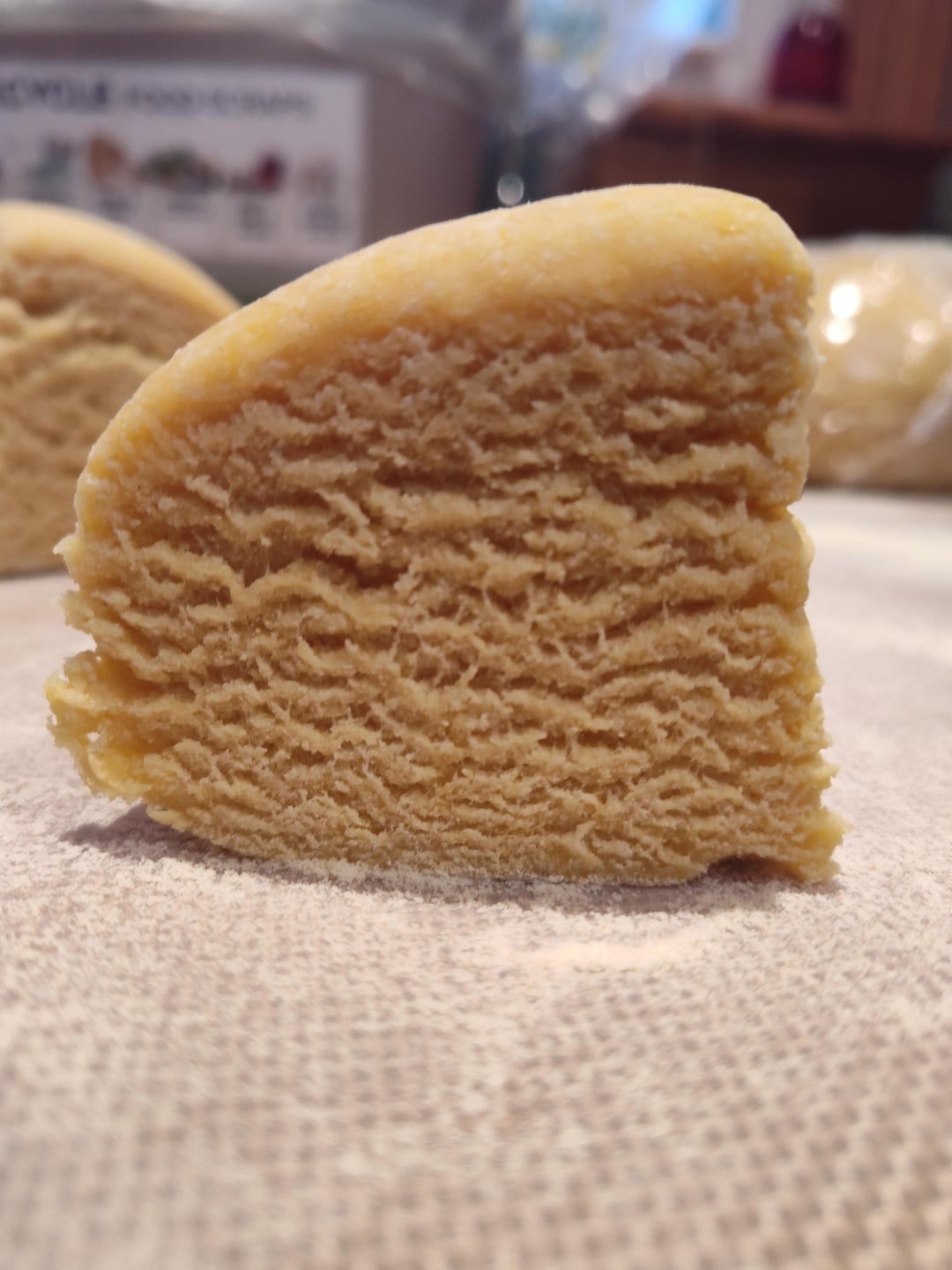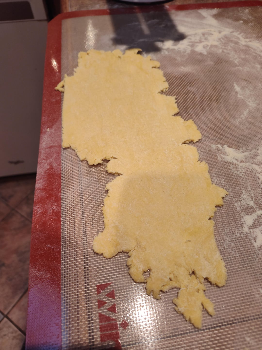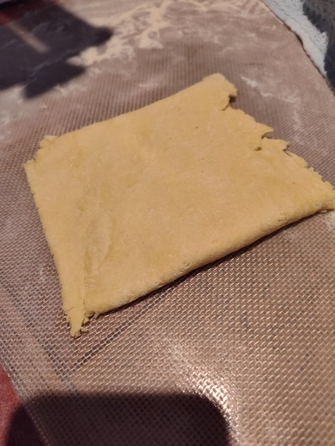 Quartered, then Pressed flat and rolled, fold over on itself, roll it, fold over on itself, roll it — do this 4-5 times and you’re ready to pass through and start rolling to desired thickness. On the kitchen aid, I usually pass through until 6-7 for lasagna and 8 for rav and other stuffed pastas.