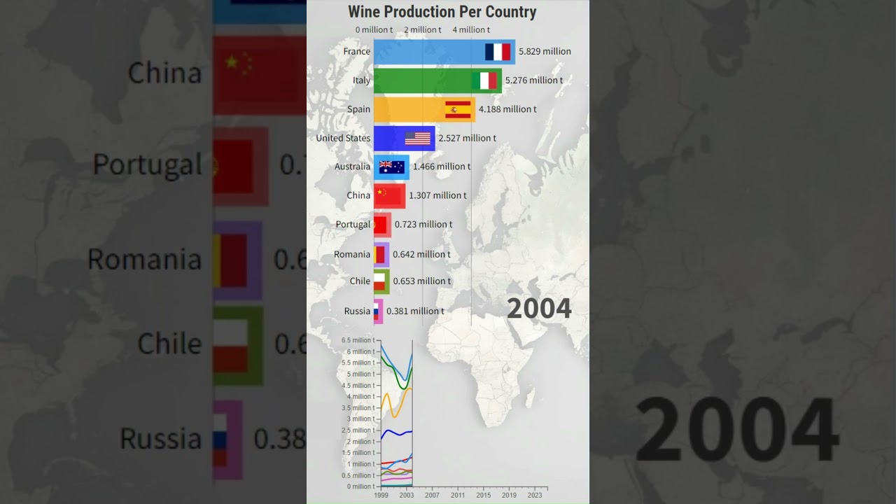 Presenting the history of wine production over six dynamic decades and showcasing the top 10 producers from 1961 to 2024 with this chart. Cheers to a journey through time and taste! #short #shorts #shortvideo 20232024alcoholAmericaaustraliabeerChileChinadrinkfrancefrench wineis wine healthyitalianItalian WineItalyItaly Winepartyproductionrussiasouthern franceSpaintop10United StatesUSvideovineyardVlogwinewine healthWrite A CommentYou must be logged in to post a comment.