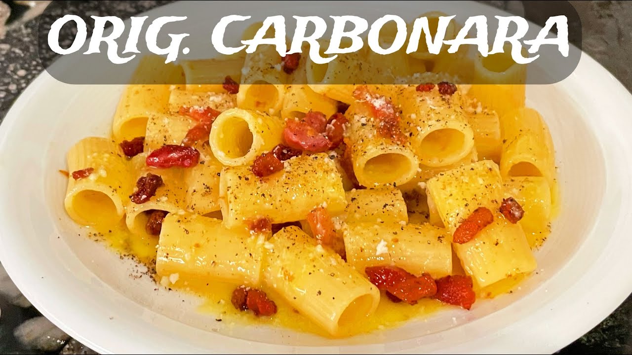 How to cook original carbonara pasta like an Italian – in this tutorial you will learn how to use the following 5 ingredients for preparing the classic carbonara like in Rome: fresh eggs, pecorino romano DOP, guanciale, black pepper and of course the pasta. That’s it!