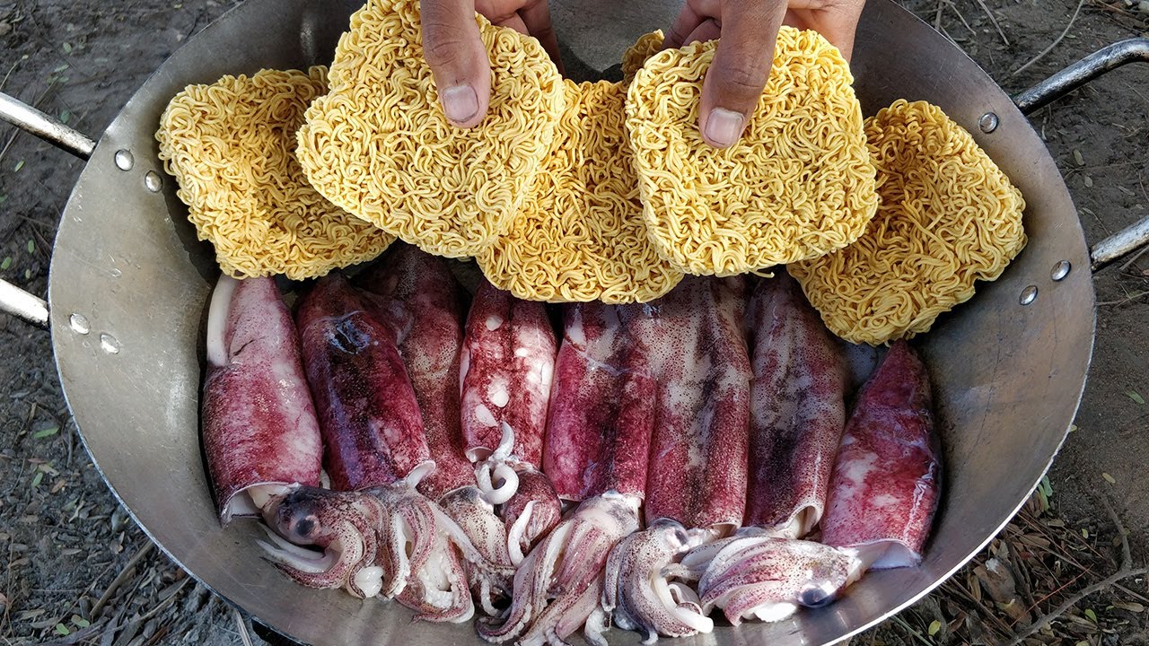 Hello everyone, today I show you “Squid Cooking with Yellow Noodle Recipe”.