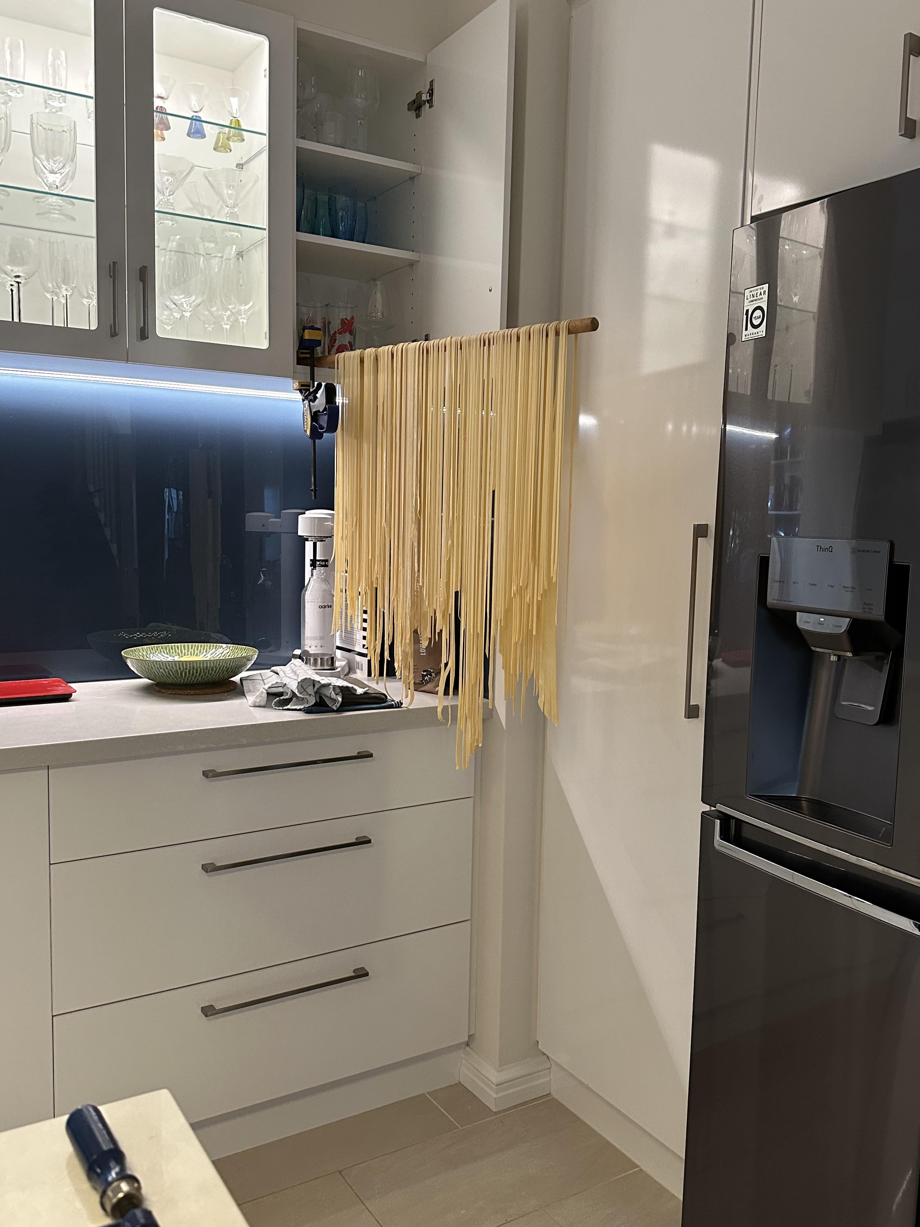 Was bored yesterday so decided to try my hand at making fettuccine. Found a great recipe and chucked it in the kitchenaid. Was so happy that it turned out so well! Let me know if you want the details. Have decided that this is my new hobby,