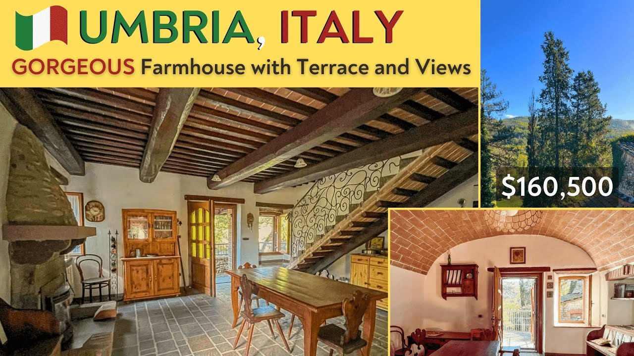 This finely restored, gorgeous 2-bedroom, 2-bathroom farmhouse is in Ficulle, Umbria, Italy. This move-in ready home has a 107 square foot terrace with pretty views, and you can park right next to the property. Join us as we wander through the town and show you this beautiful house.