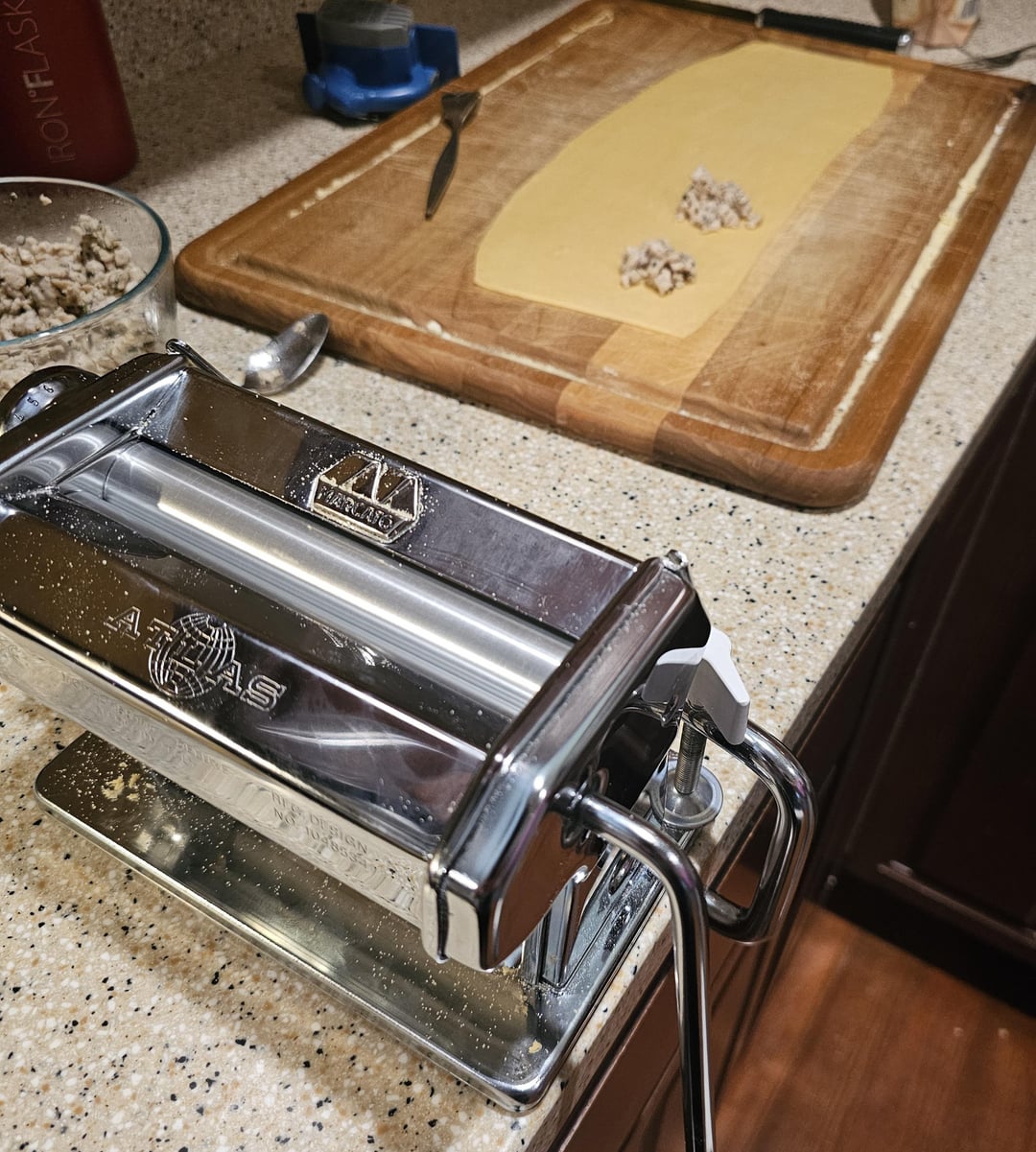 275g all purpose flour 3 eggs at room temperature 1/2 tsp salt Ricotta and ground turkey with basil, oregano, red pepper flakes.My wife and I had a blast making this together!by Several_Tea3494 Homemade Dish - From ScratchPastaWrite A CommentYou must be logged in to post a comment.