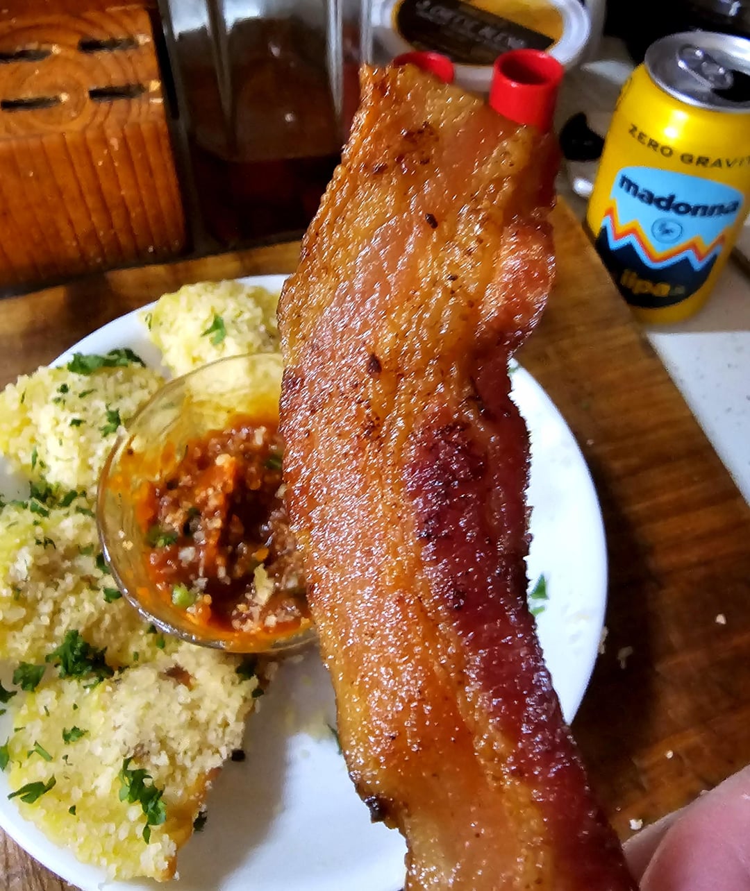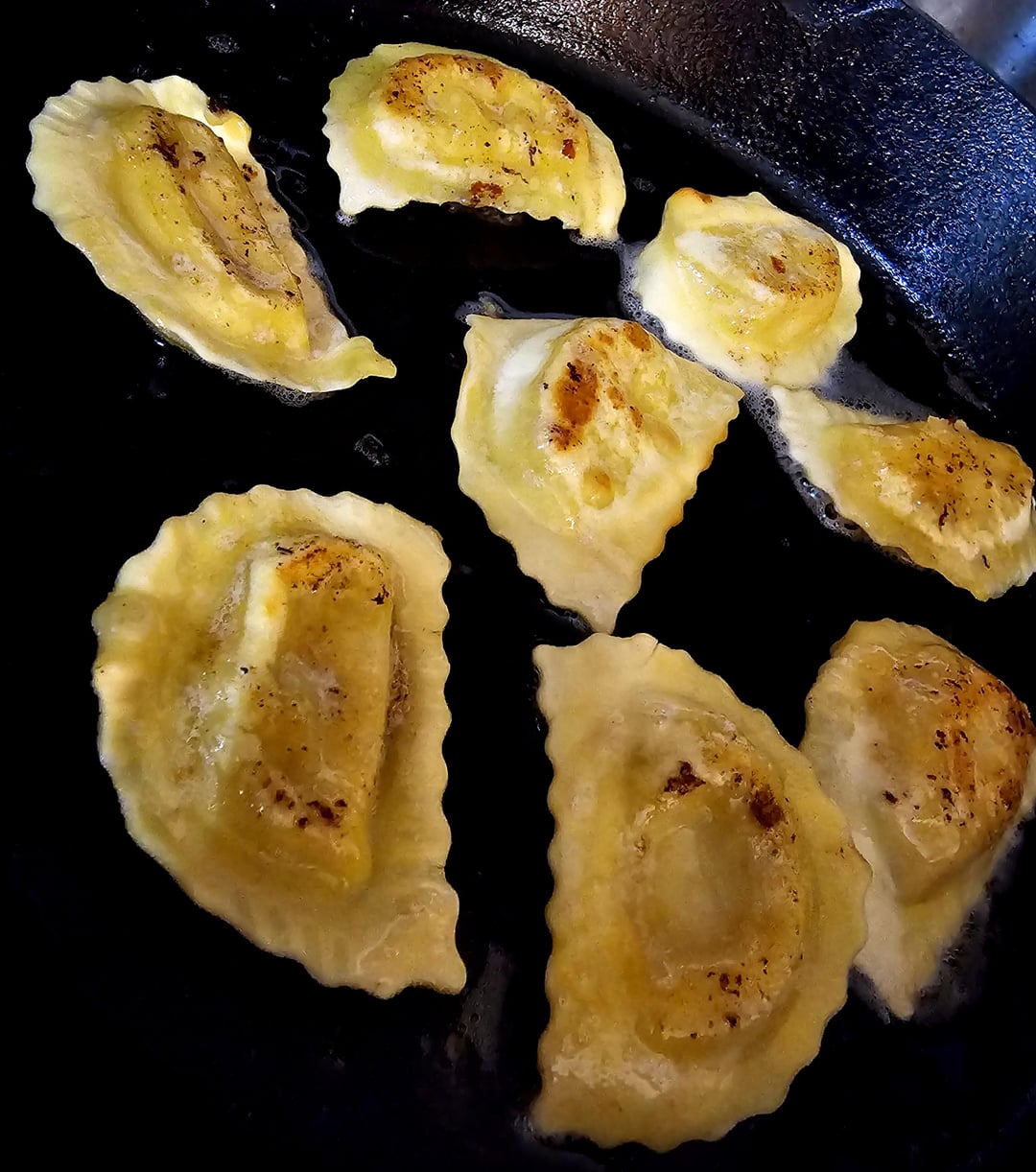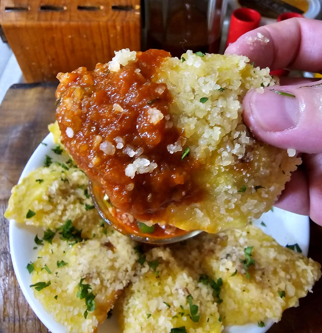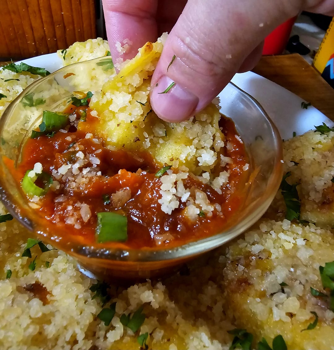 Sausage Ravioli Pan Fried in Bacon Fat and Tossed in Parm w/ Extra Bacon for Snacking