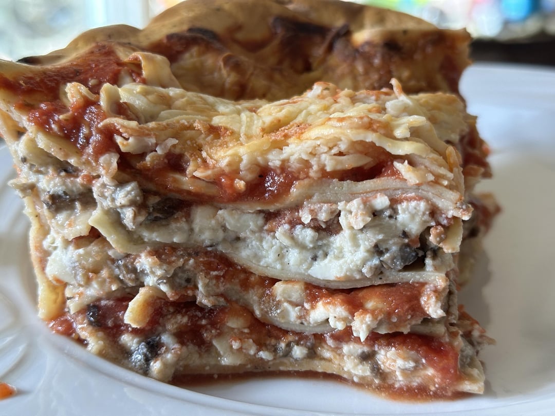 Noddles are eggs, flour, and seasonings. The sauce is canned whole tomatoes, chicken stock, canned diced tomatoes and seasonings. The filling is cooked mushrooms and ricotta with seasonings. And mozzarella cheese.by sahmama710 Homemade DishPastaWrite A CommentYou must be logged in to post a comment.
